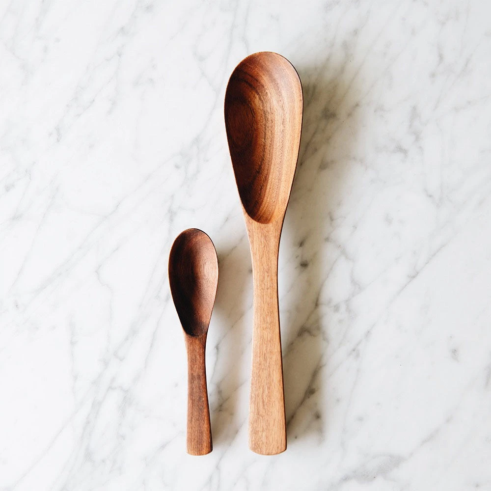 These beautifully grained acacia wooden cooking spoons are hand carved by talented artisans in India.Â