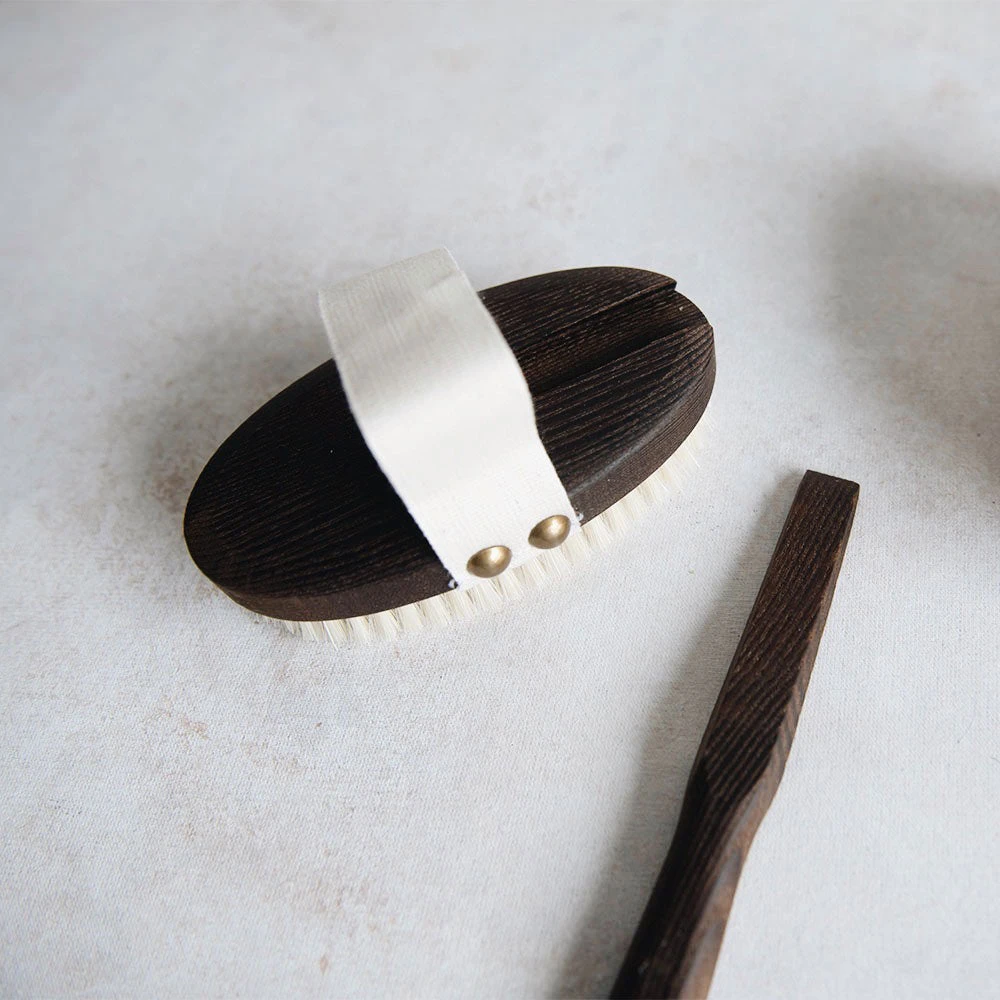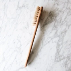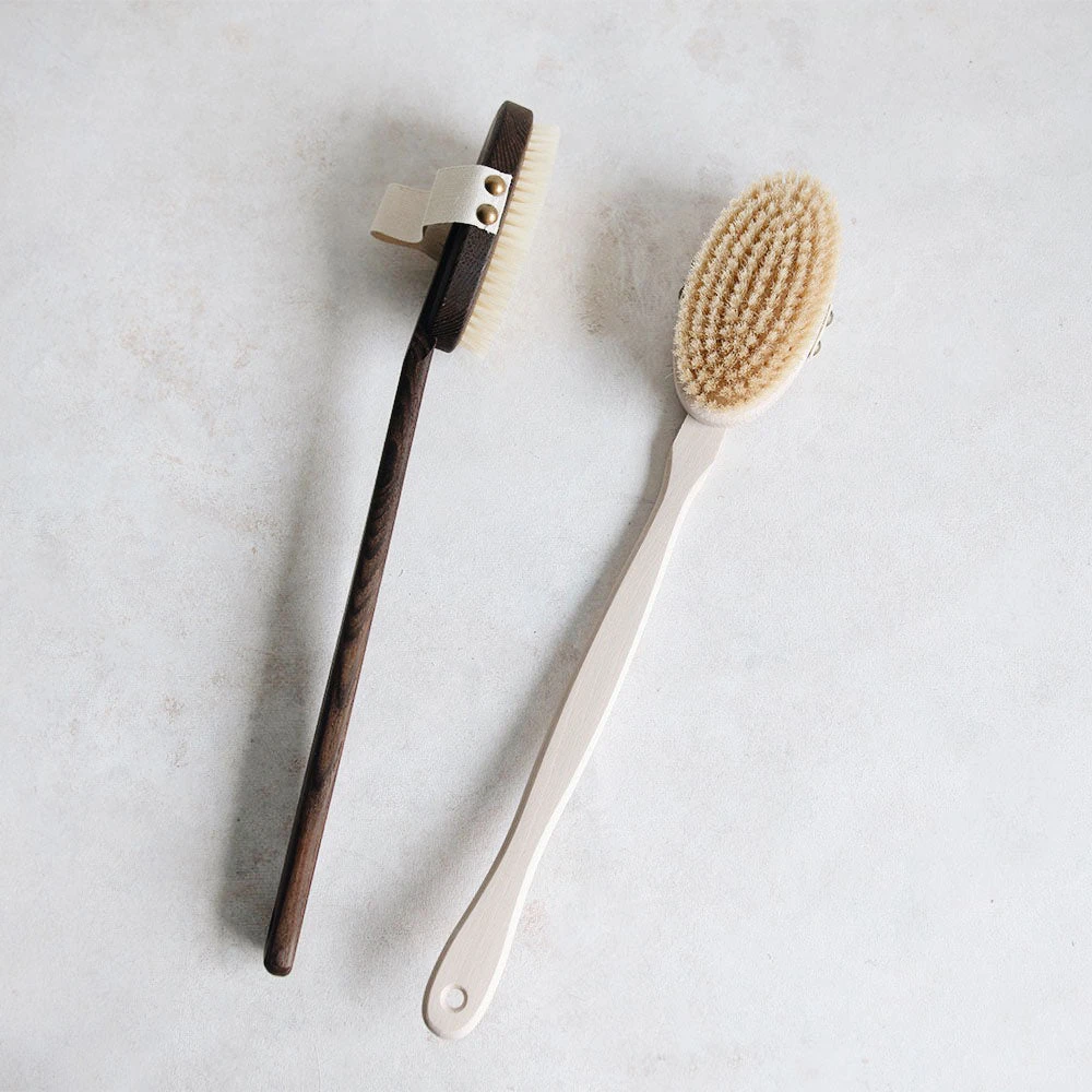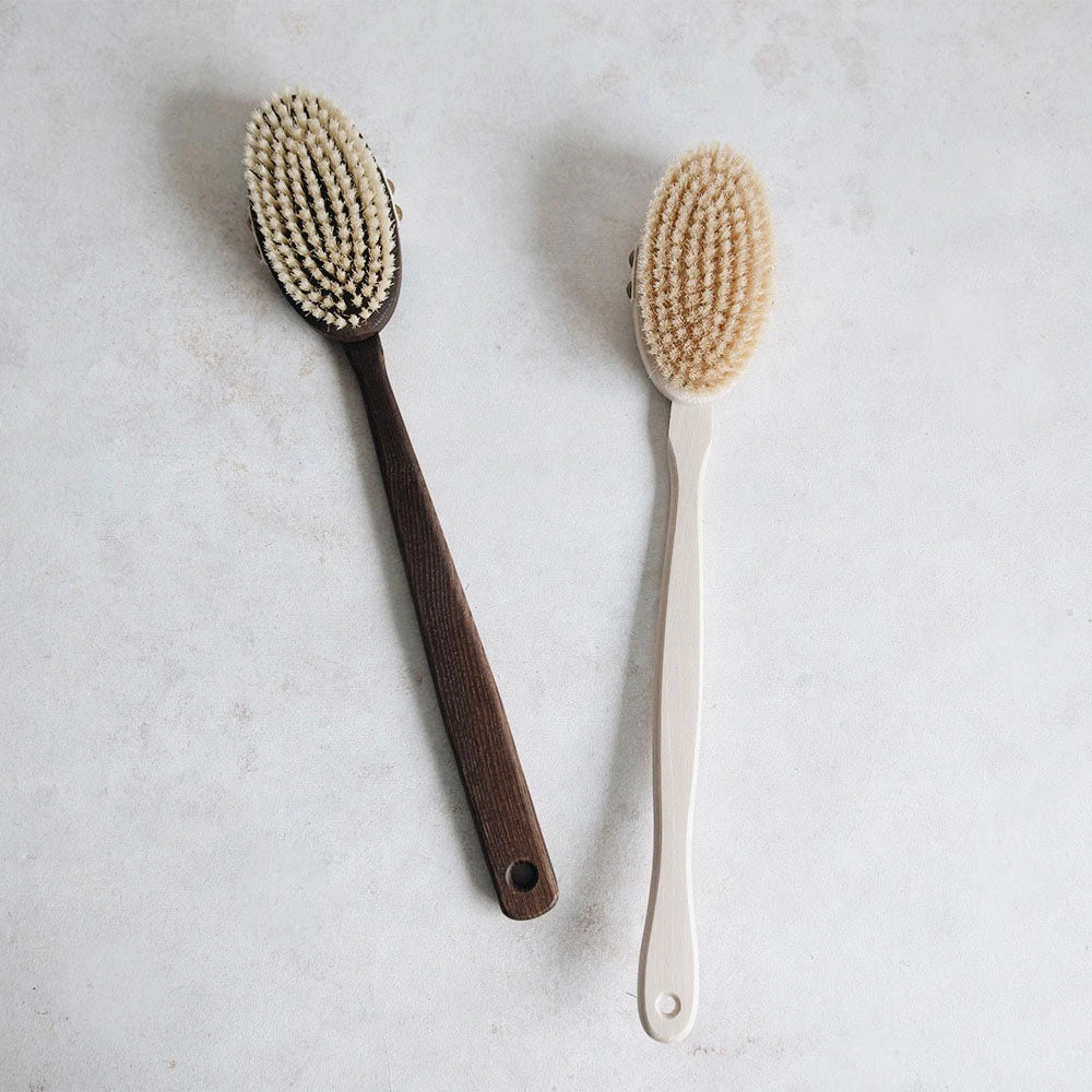 Beautiful bath brush with beechwood and gentle natural bristles. Detachable head with cotton belt.Â