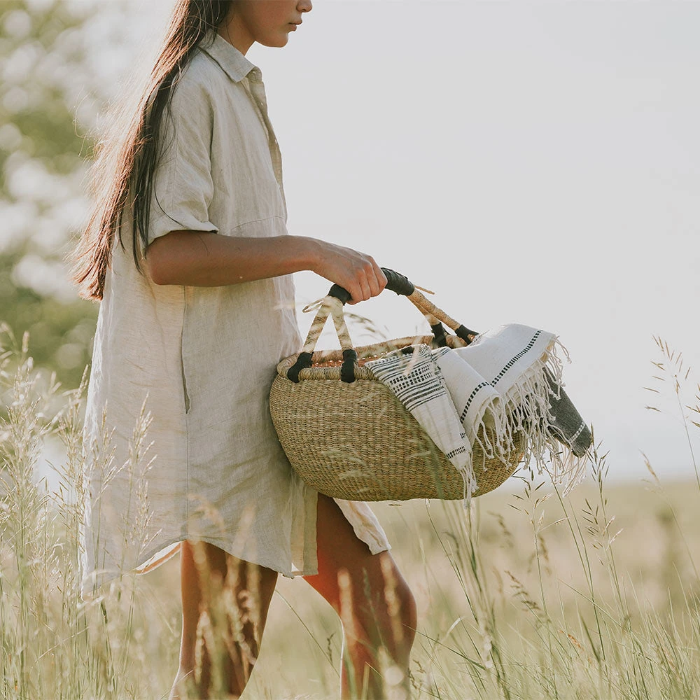 Artisans in the Bolgatanga region of Ghana weave these beautiful and durable baskets from thick, tough elephant grass. A popular choice among green shoppers, busy mothers and picnic planners worldwide, Bolga baskets stand up to use and abuse and remain functional and beautiful for years.