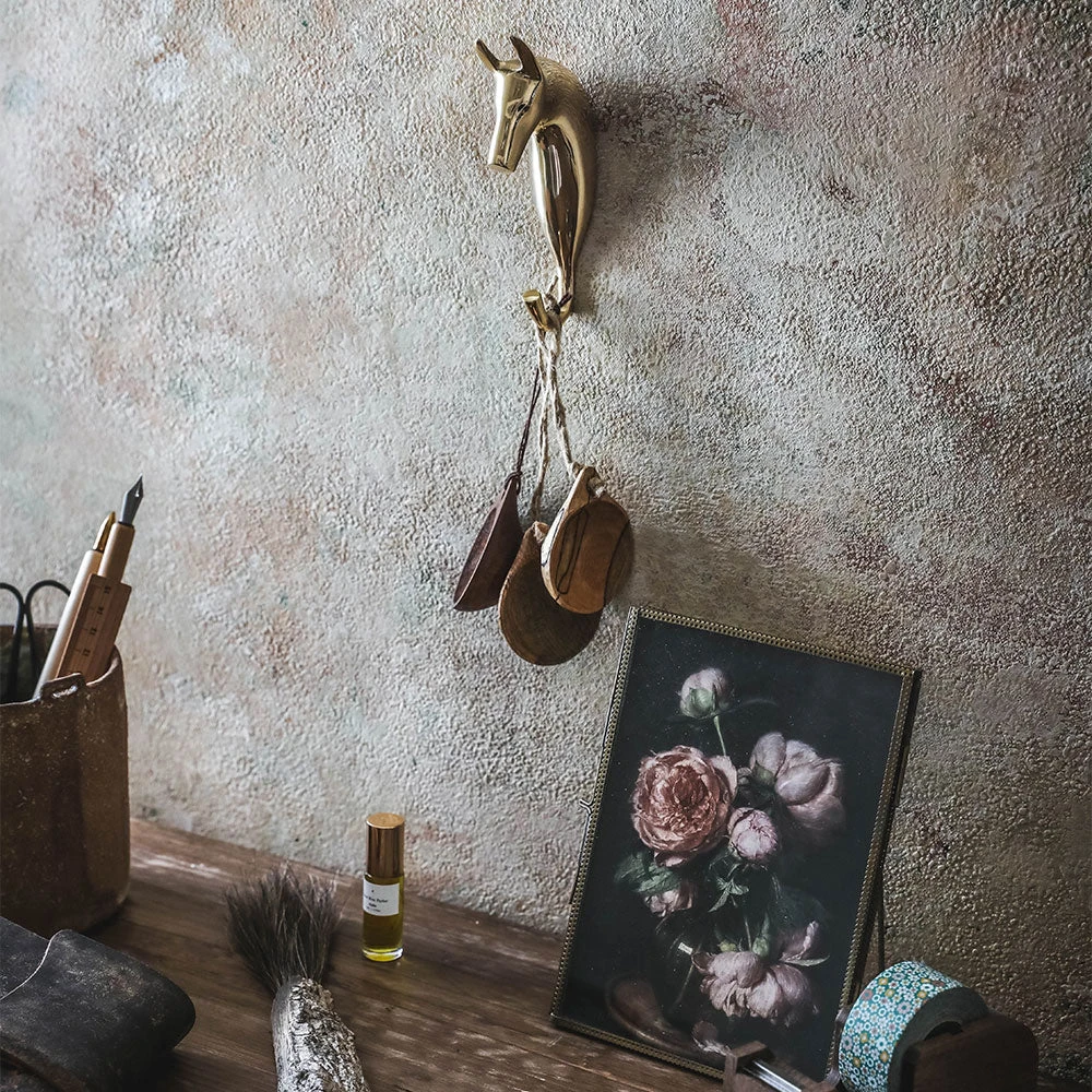 A solid brass horse hook provides a stable place to hang your articles.