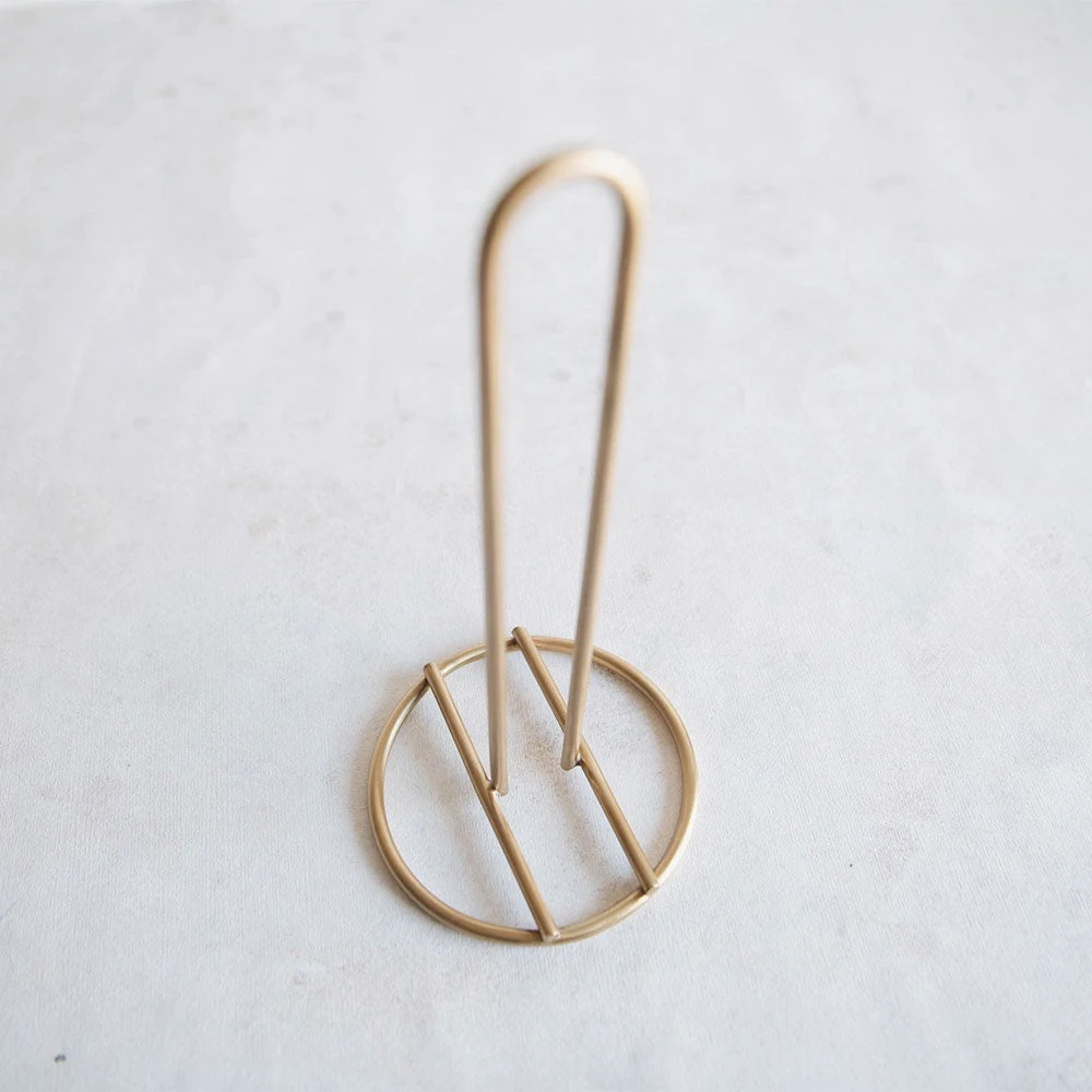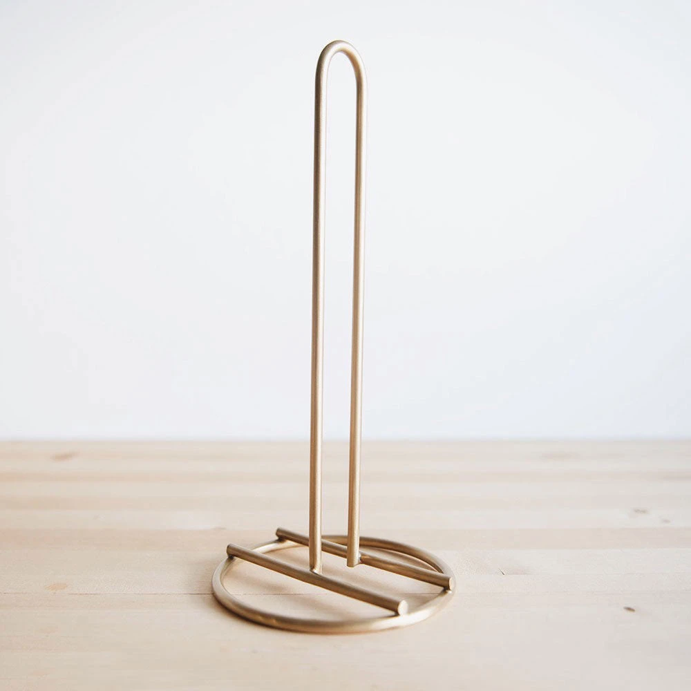 Simple, handmade paper towel holder in warm, antiqued brass. This beauty is also a great option for extra toilet paper rolls in the bath. Irregularities in finish will occur. Useful in the kitchen, bathroom, closets, and more!