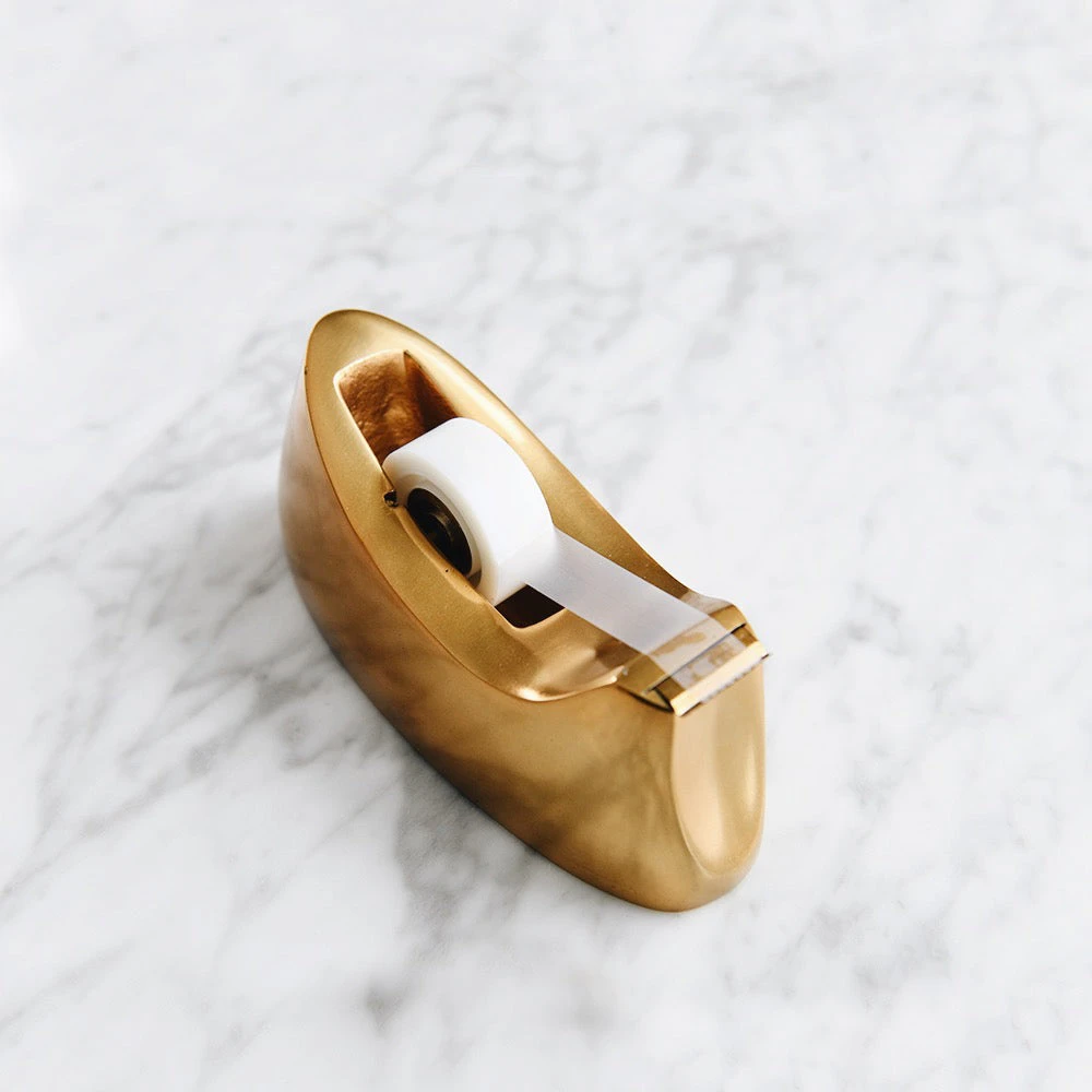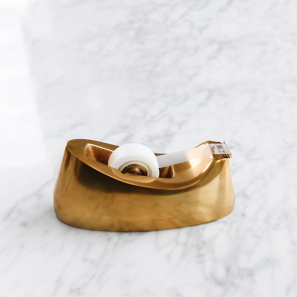 Brass tape dispenser for an inspired tidy desk.