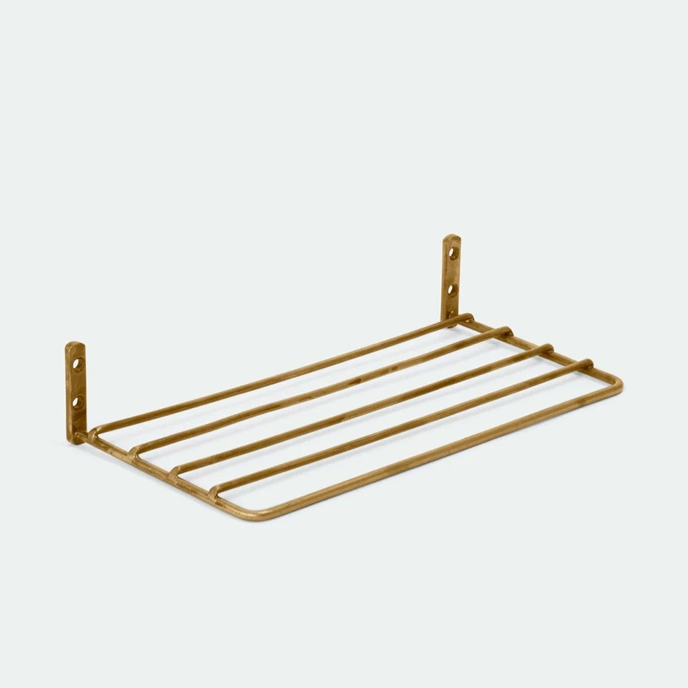 Simplicity at its finest. A beautifully designed compact shelf hand-woven in sturdy brass wire. Let your organizational zeal continue as these are perfect for keeping anything from spices to apothecary items at-the-ready. Variations will occur in the texture of this handmade item. Irregularities in finish will occur and bring out its true handmade nature.Â
