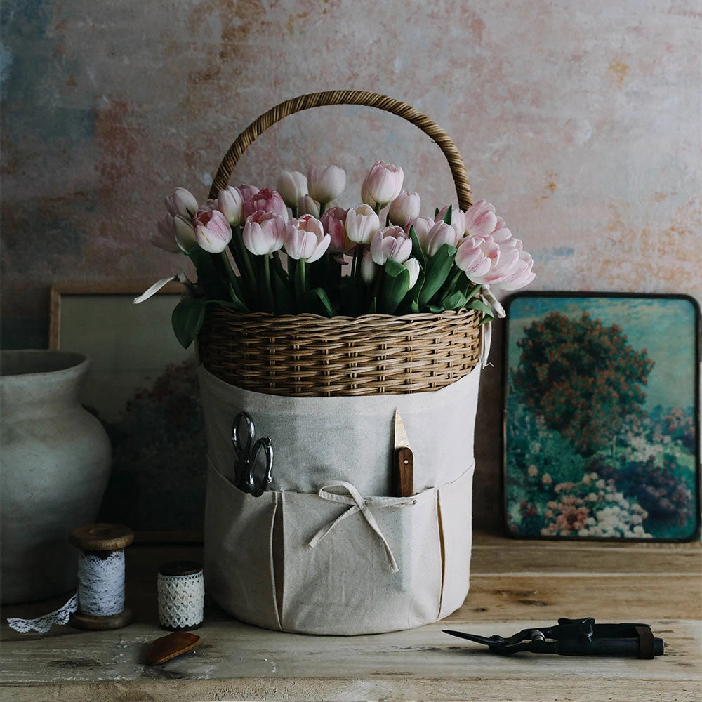 These charming rattan baskets are sturdy, functional, and offer easy storage. The natural classic color and organic texture will easily coordinate with any decor.