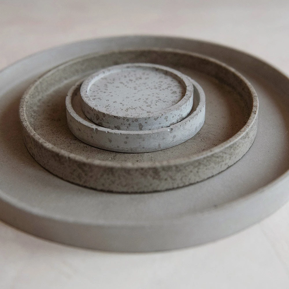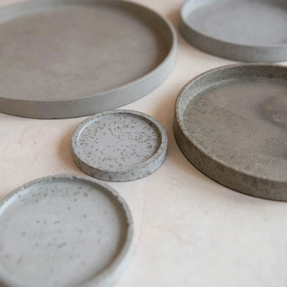 Cement trays ideal for curated candle groupings, small storage, or centerpieces. Crafted from cement and finished with mineral oil, they’re designed for easy maintenance — simply wipe them clean. Do not submerge in water. If you’d like to use them for food presentations, such as charcuterie, ensure you line the bottom with parchment paper first. Every piece is unique and will have a different design.