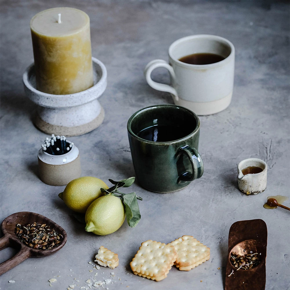 These perfectly simple and beautiful mugs are hand-thrown by skilled artisans in India. Every cup will have its own unique design.