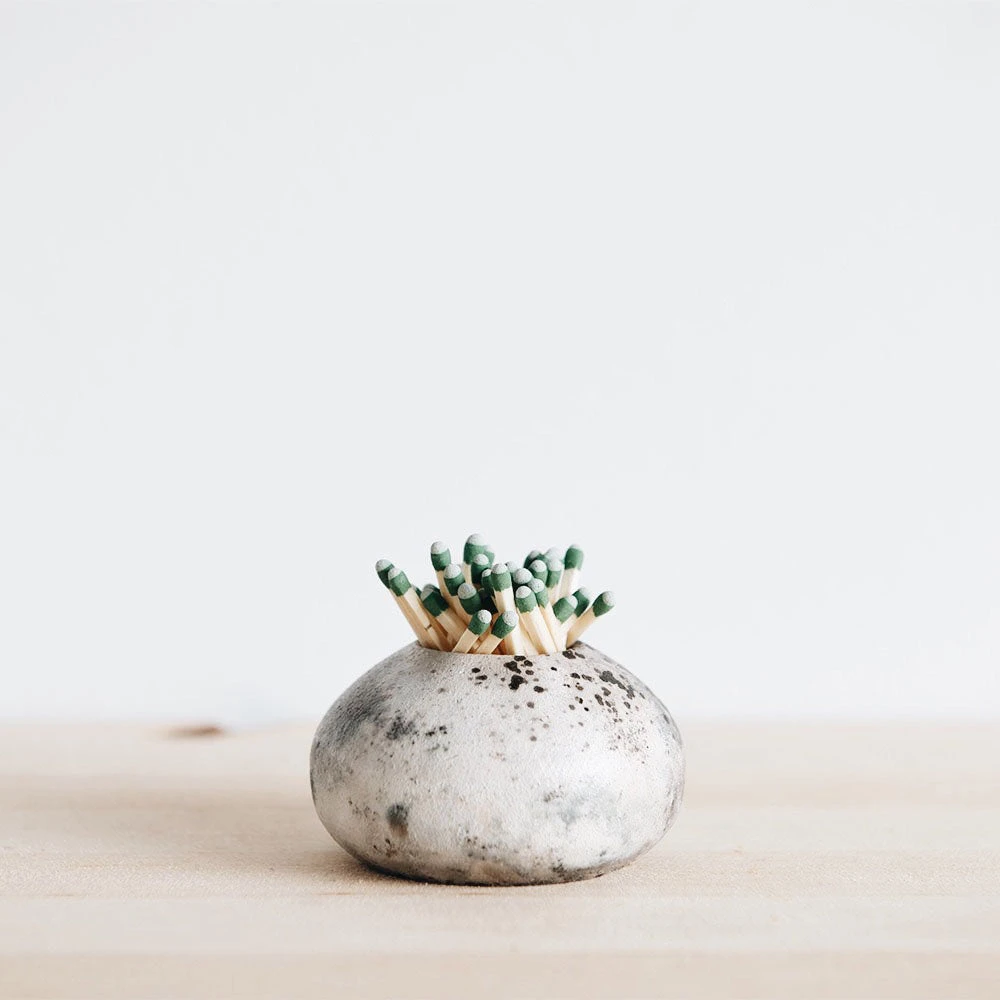 Beautifully unique and one of a kind, this striker gets its beauty from the fire. No two will ever be alike. Use strike anywhere matches with a white tip for best results. Handmade in Austin, Texas.
