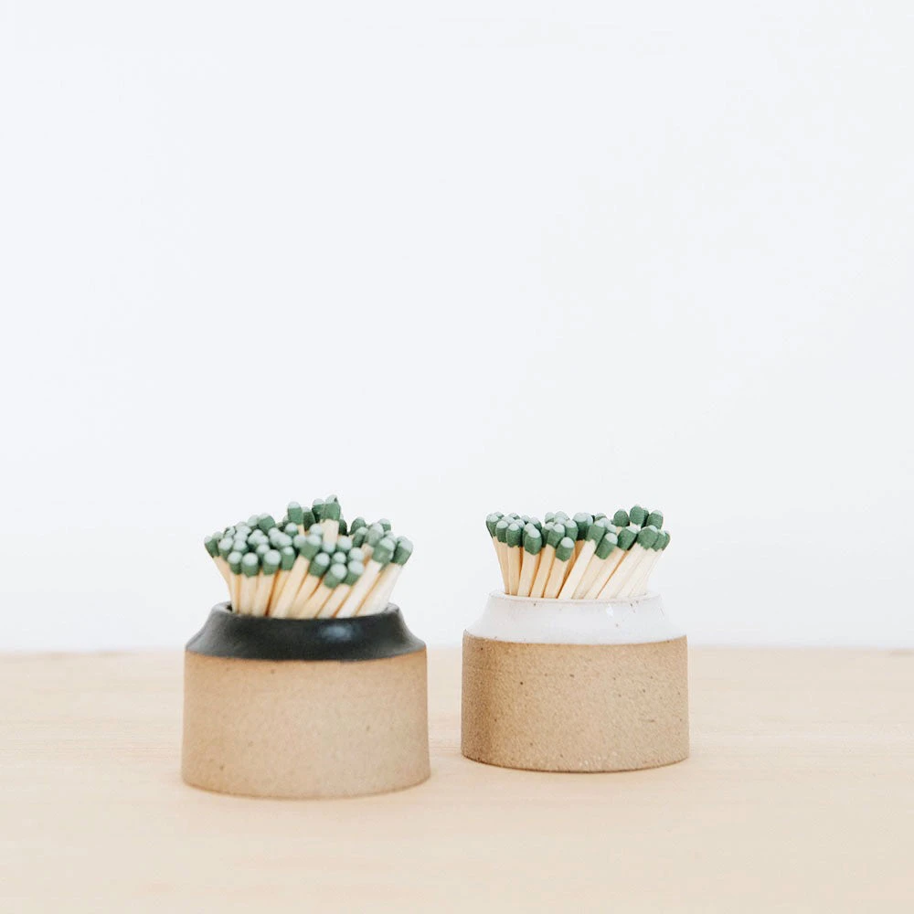 The cutest little match striker available in white or black. Strike matches directly on the side or bottom.