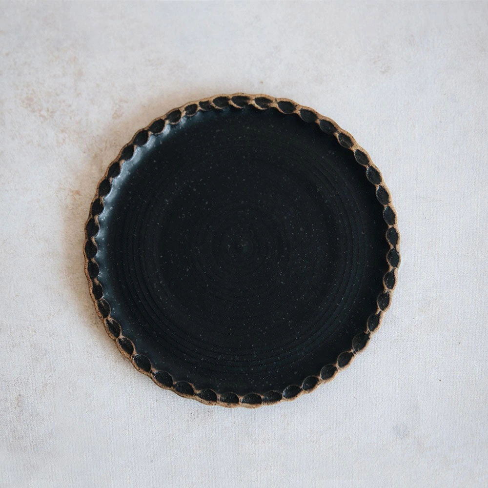 Pictured with our scalloped plate – dark.
