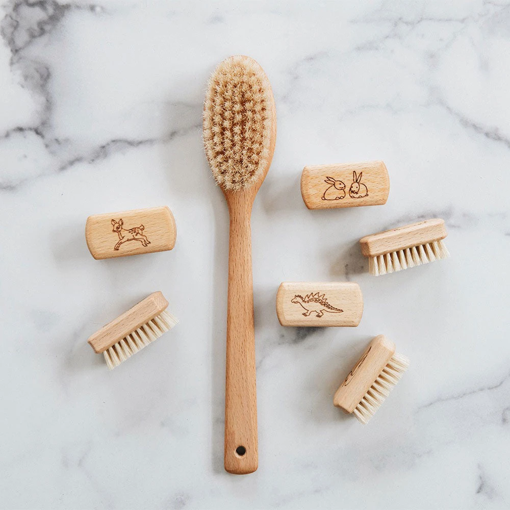 Rub-a-dub-dub…lots of fun in the tub. Make bath time fun with these children’s bath brush. Made with natural bristles.Â