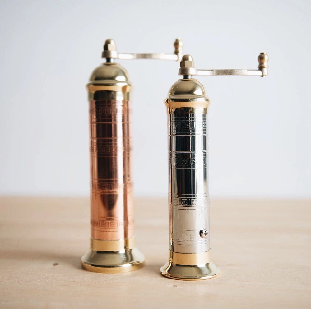 Mix and match all of our designs. Also pictured with our chrome and brass pepper grinder. (This listing is only for the copper & brass mills)Â