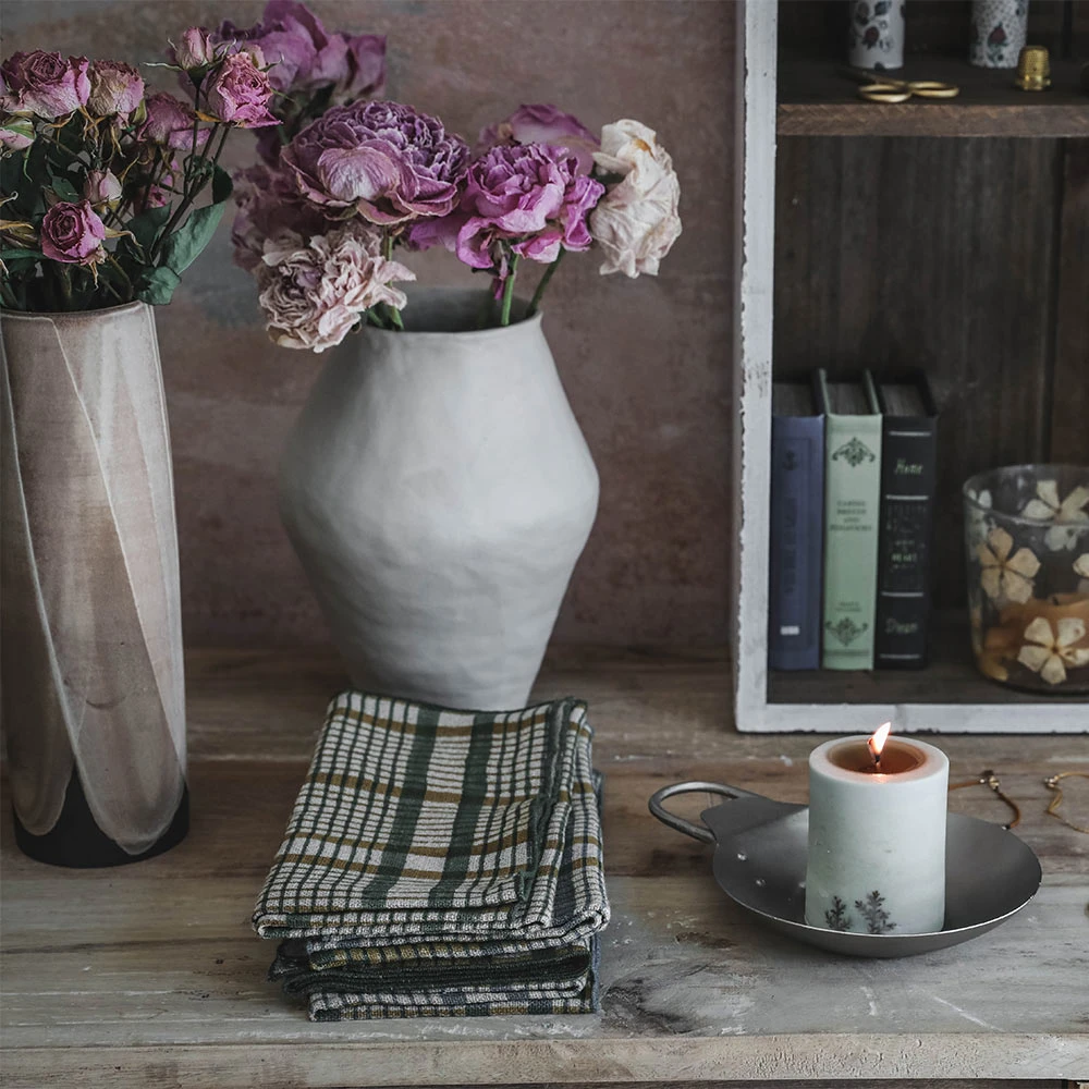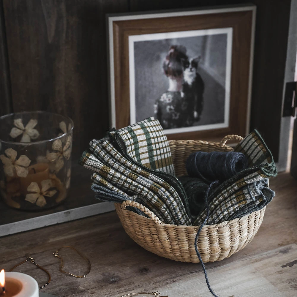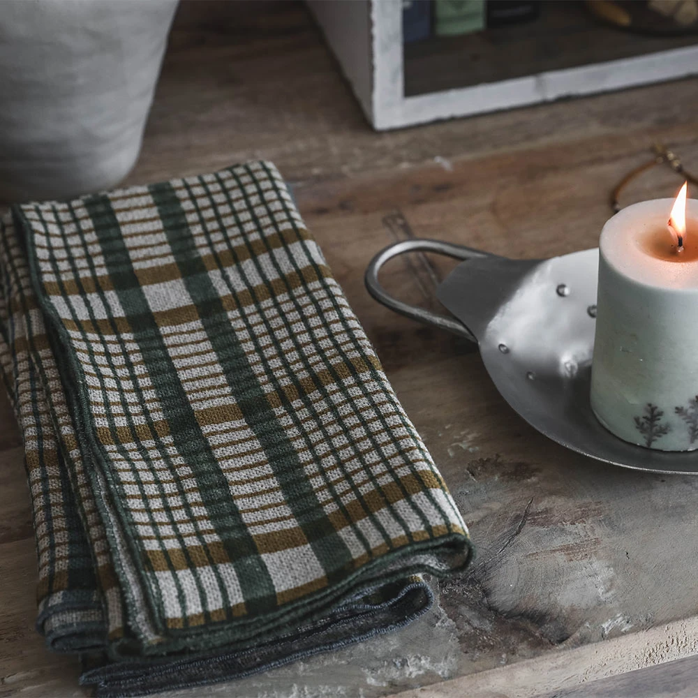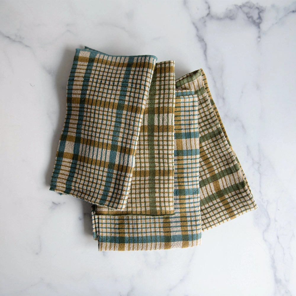 Gorgeous block-printed cross pattern on linen, available as napkins and tea towels.