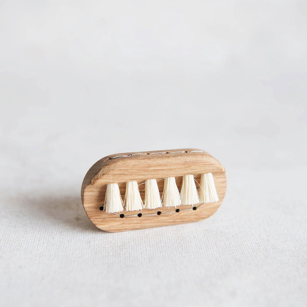 Nail Brush in oil-treated oak and tampico fiber. Small double-sided nail brush for your toiletry bag when traveling. Tampico fiber is elastic and waterproof with a certain stiffness but without becoming all too hard which makes the material nice and handy for cleaning hands and nails. The shorter stiffer bristles on the top of the brush will effectively access and remove dirt under the nail. The perfect brush for hands and nails!