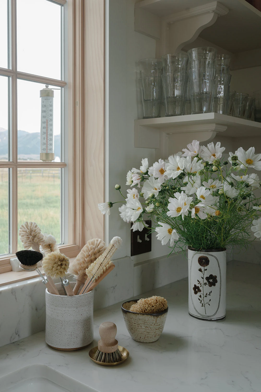 Ditch your dingy sponge and plastic dish brush for this beautiful oiled beech wood essential everyday brush. The handle was carefully designed and shaped for comfort.Â
