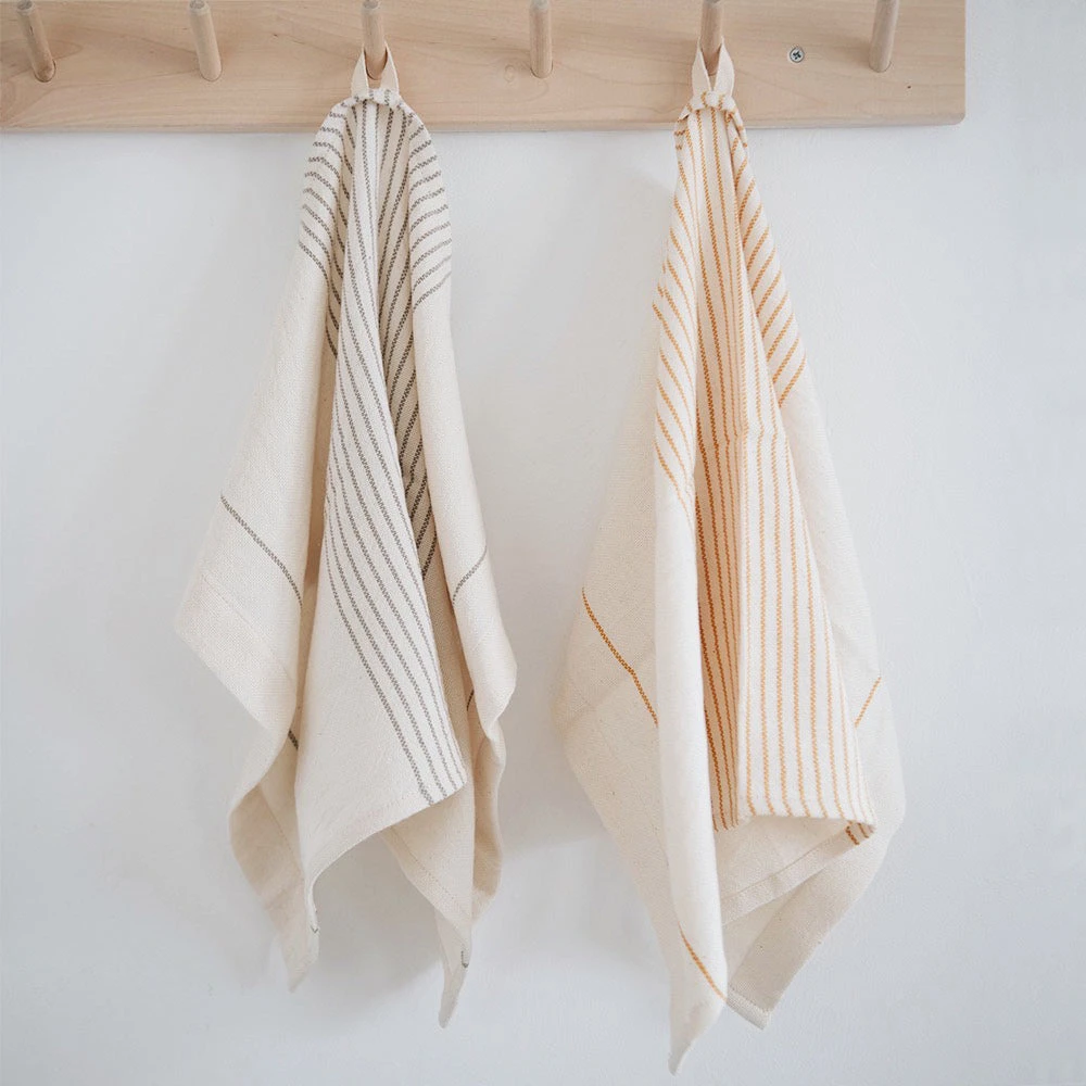 This collection is completely handmade of hand-spun and hand-dyed cotton. The Ethiopian cotton adds a uniquely rich texture that will continue to soften and become more absorbent with each wash/dry.