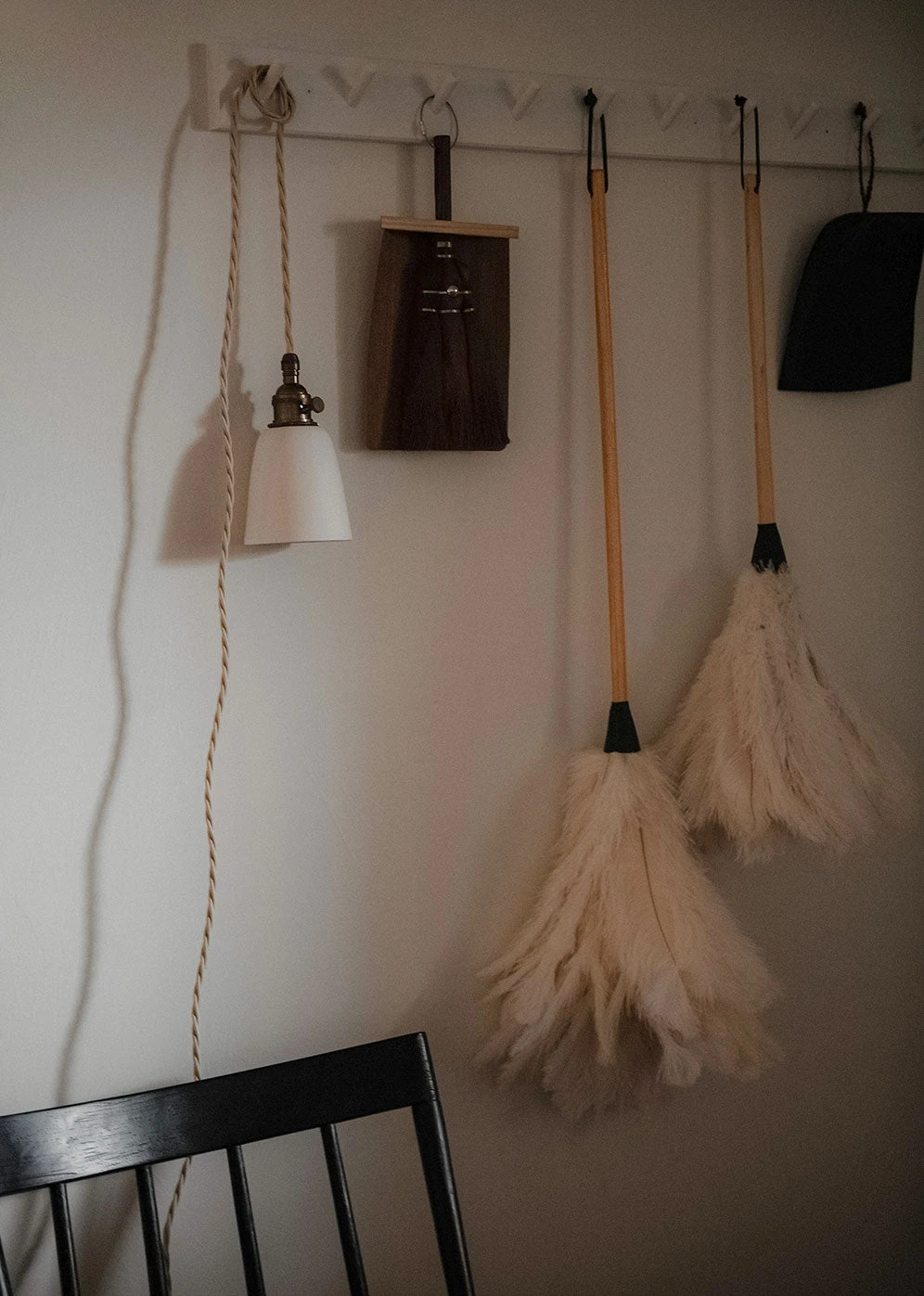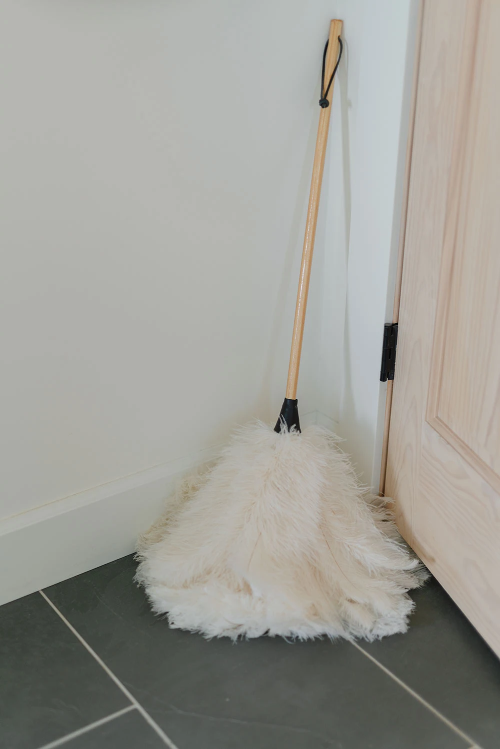 Feather Dusters are a sublime way to clean your house! Made from premium feathers, hand bound to a turned blond wood handle and finished with black leather ferrule and leather hanging strap.