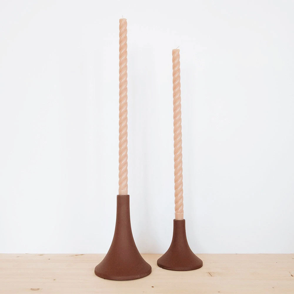 Ceramic grand taper holders offer a fresh variation in shape and size and boast a clean, matte finish. With stand-alone appeal, they also feel dynamic as a collection. Each holder is sized to fit a standard taper candle. Due to the hand-finished nature of this product, slight form variations may occur.