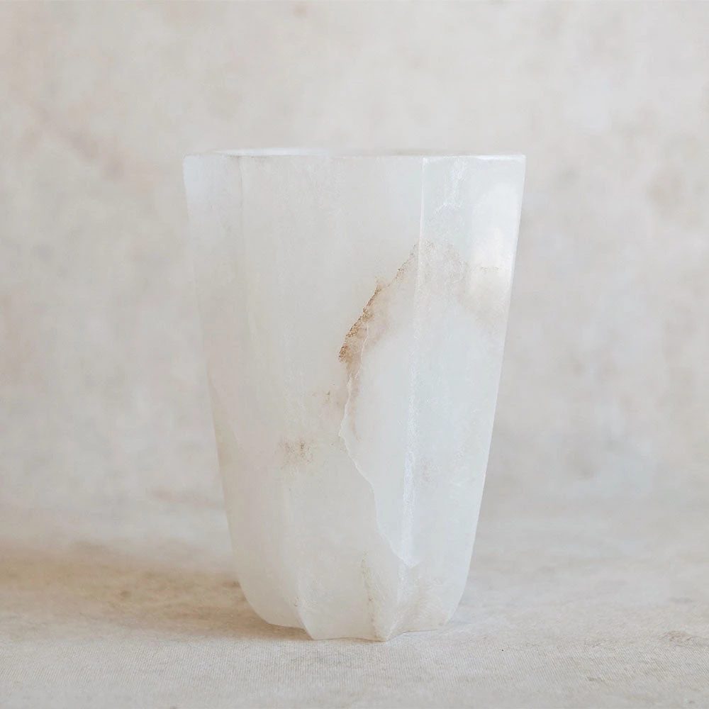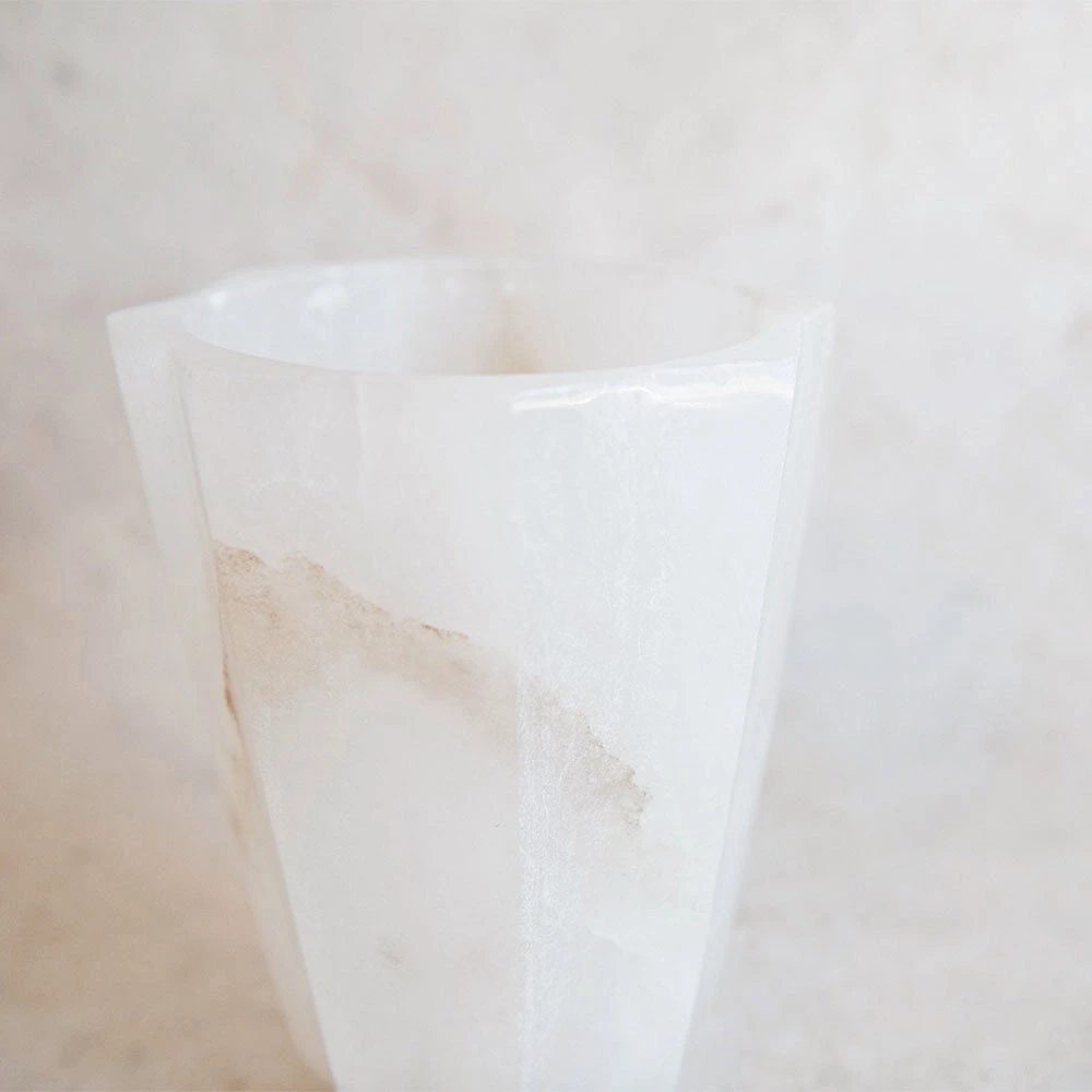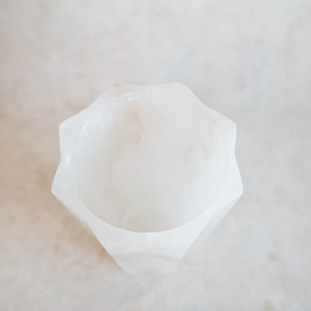 Elevate your blooms and branches with this gorgeous heirloom alabaster vase. Meticulously carved and polished by hand, each vessel features gently scalloped sides culminating in an eight-pointed star at the upper rim. Slight tonal variations in the fine-grained alabaster are to be expected, promising that each handcrafted vase is unique.