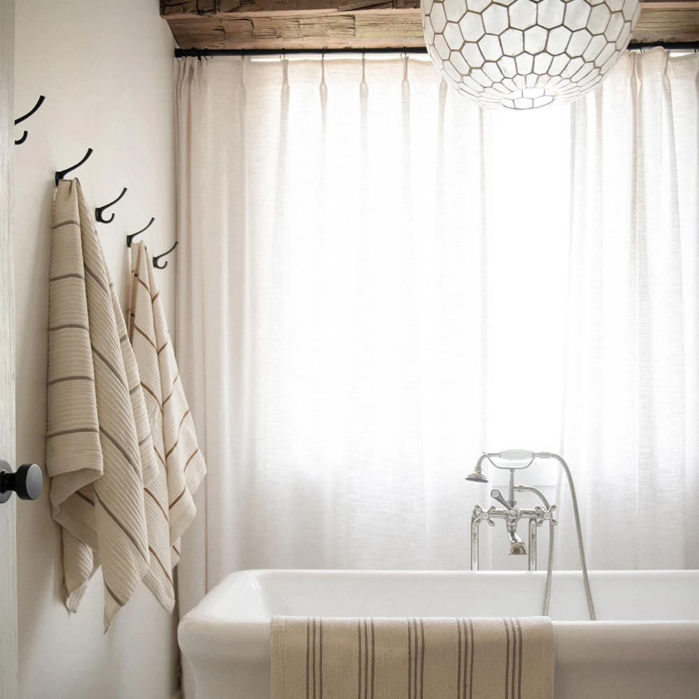These waffle hand towels are hemmed on the edges. They are made with a four-harness traditional handloom which provides the towel its three-dimensional look. The waffle weave is very absorbent and super soft.