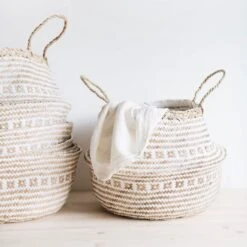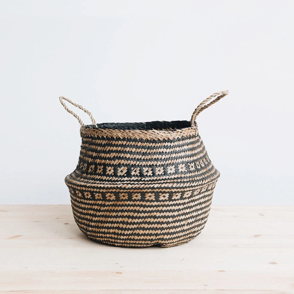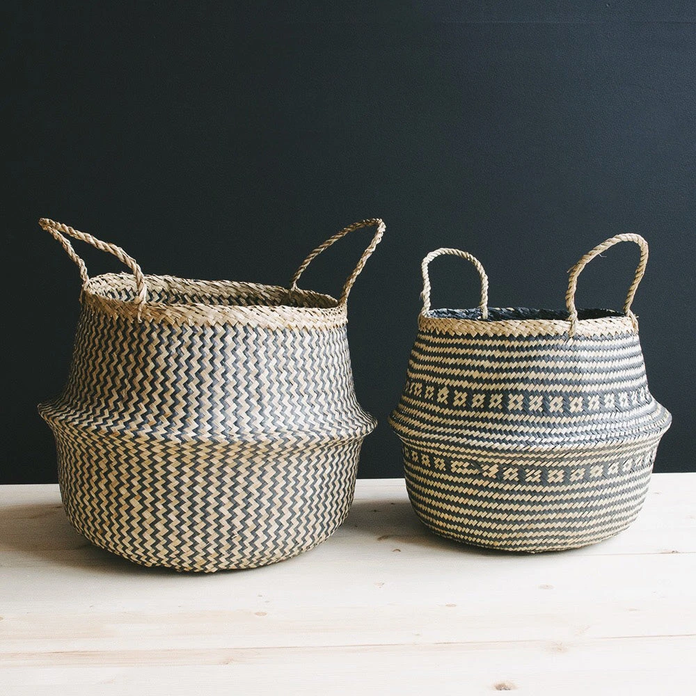 Belly baskets traditionally have been used to carry rice from the field to market. Handmade by village artisans in the community center and in their homes. Woven with recycled paper to create a unique design.