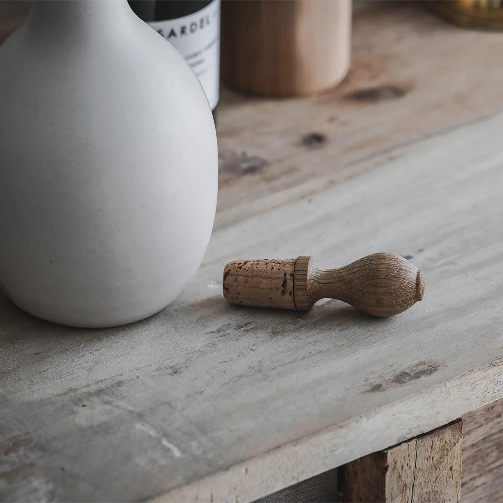 Made from natural cork and FSC oak, this wine stopper will compliment any wine.Â