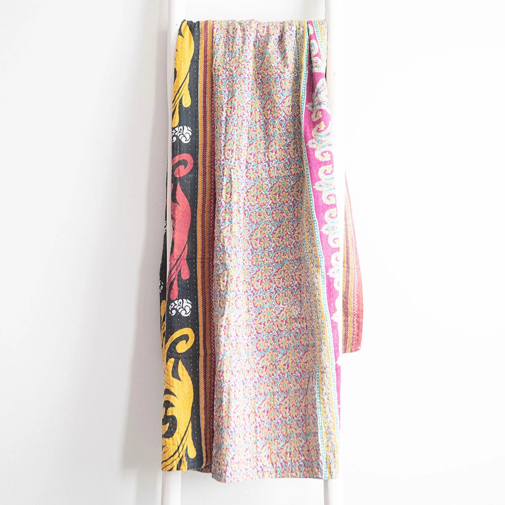 - multiple quilted layers of reclaimed sari material make this Kantha throw thicker and warmer