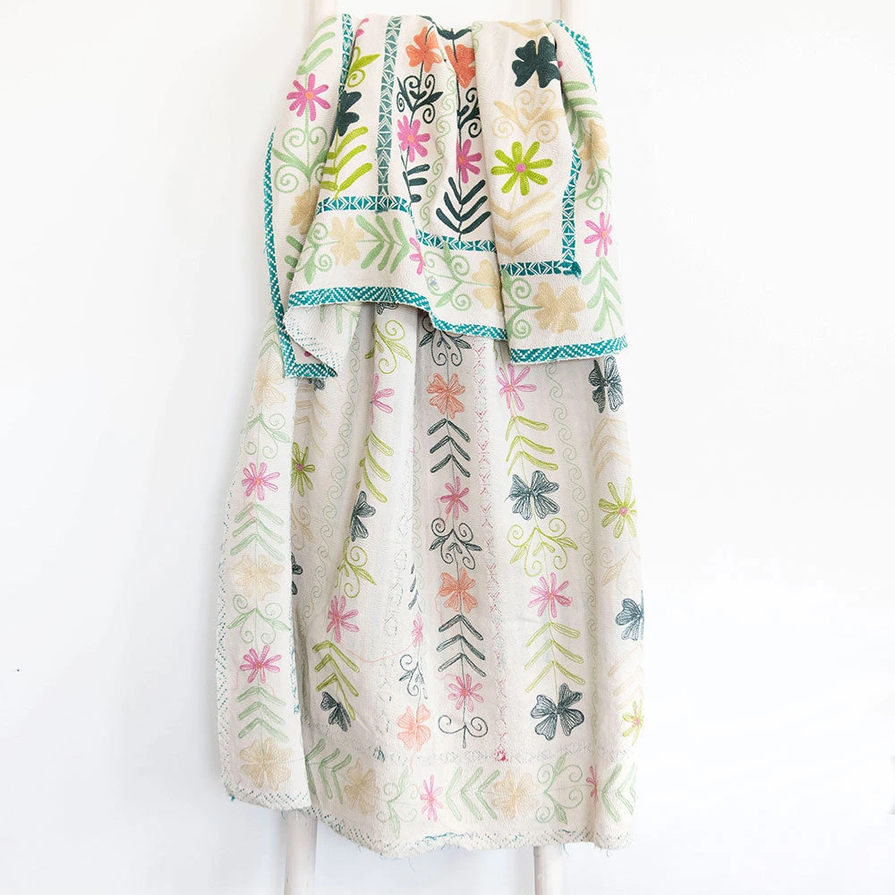 100% hand-stitched & hand-embroidered suzani textile. It can be used as a throw, coverlet, picnic blanket, sofa cover, decoration, wall hanging, or kitchen accessory… the list goes on and on!