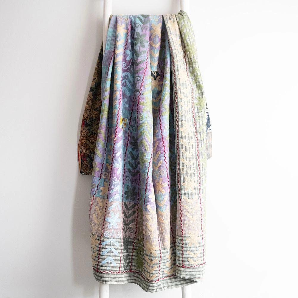- multiple quilted layers of reclaimed sari material make this Kantha throw thicker and warmer