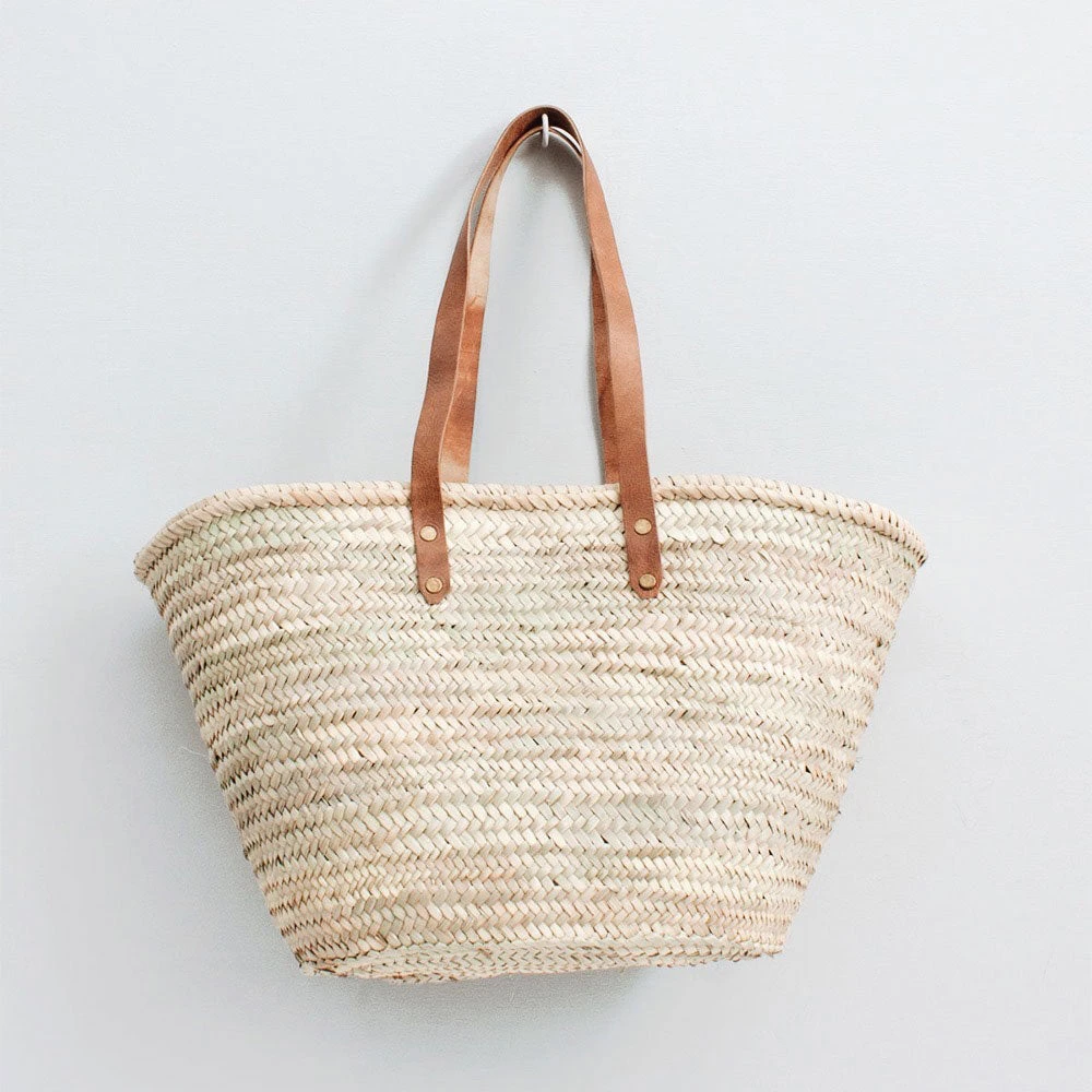 The perfect catch-all shopper! Our double handle basket shoppers are made from woven palm leaf, with double leather handles.