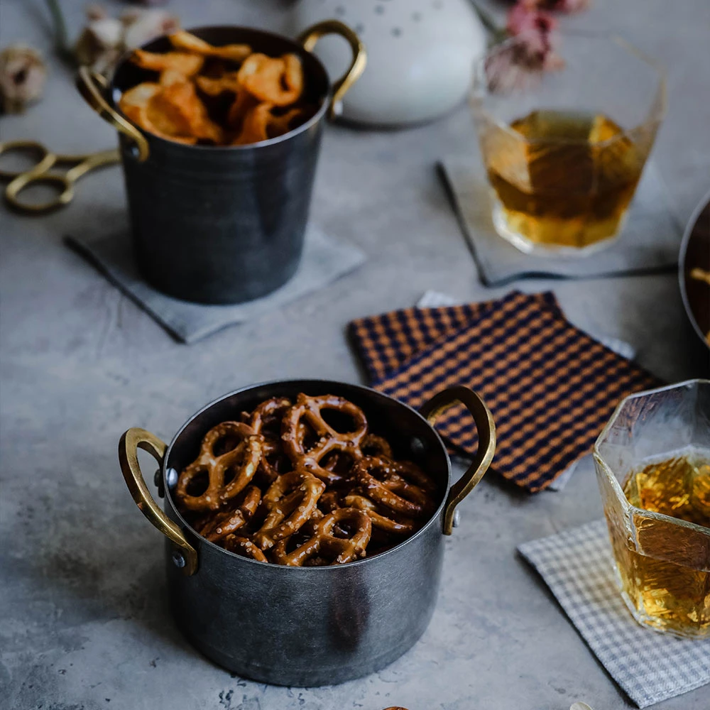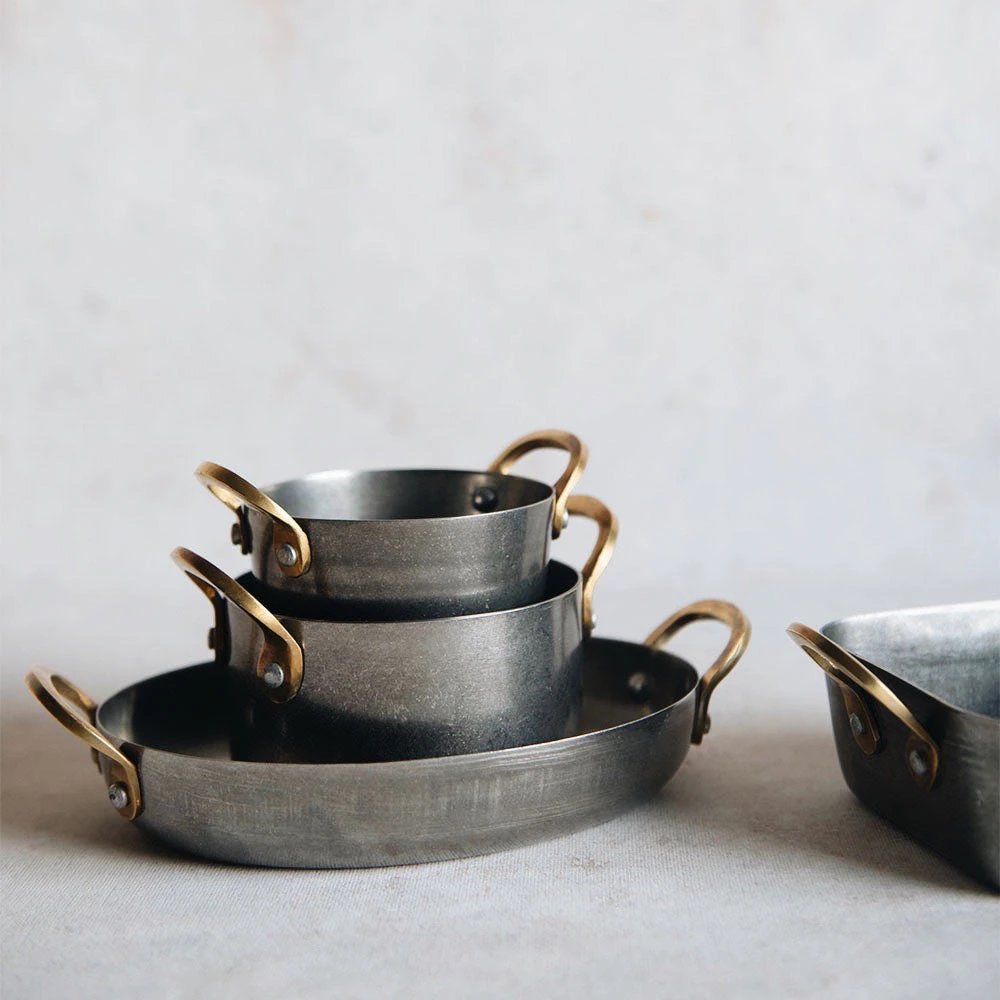 We love these sweet little pub pots! Give your table setting an informal yet elevated touch thanks to the stainless steel and brass handles. Take your cooking straight from the oven to the table and serve it in individual portions or use them for pub-style snacking!