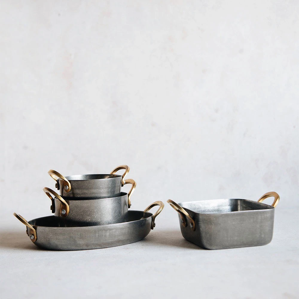We love these sweet little pub pots! Give your table setting an informal yet elevated touch thanks to the stainless steel and brass handles. Take your cooking straight from the oven to the table and serve it in individual portions or use them for pub-style snacking!