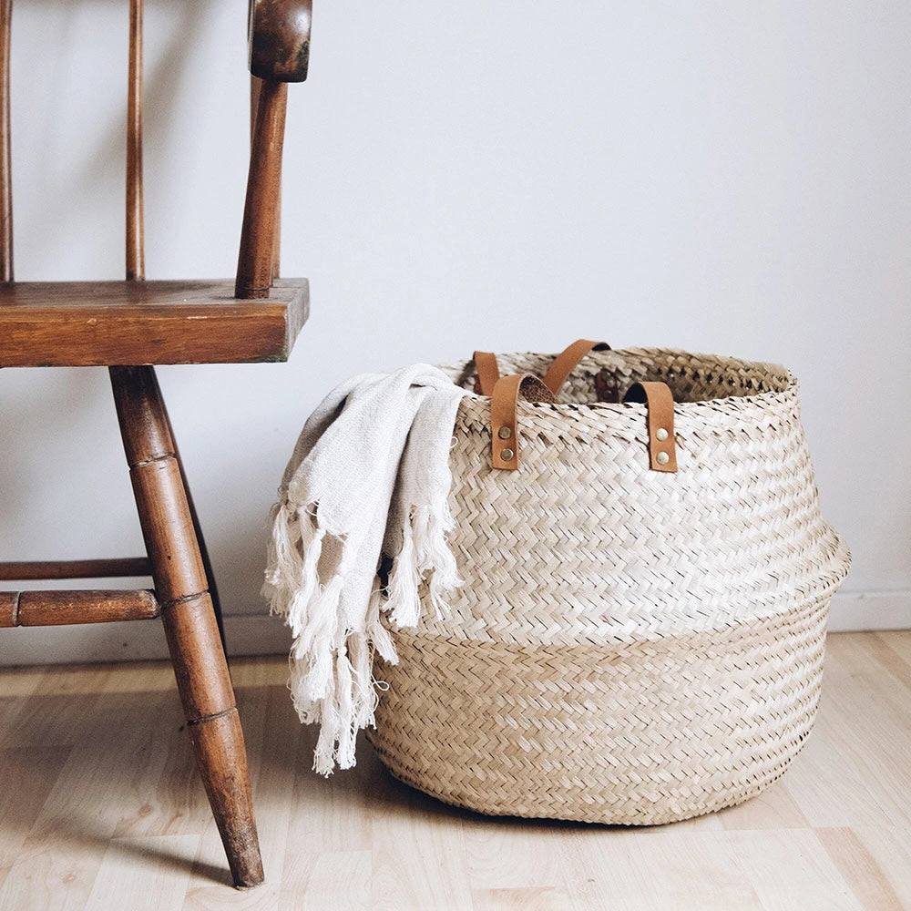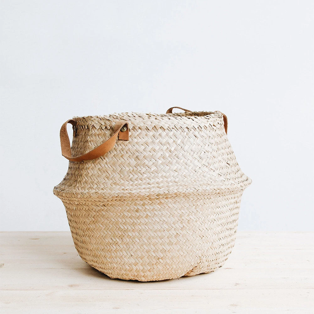 Belly baskets traditionally have been used to carry rice from the field to market. Handmade by village artisans in the community center and in their homes.Â
