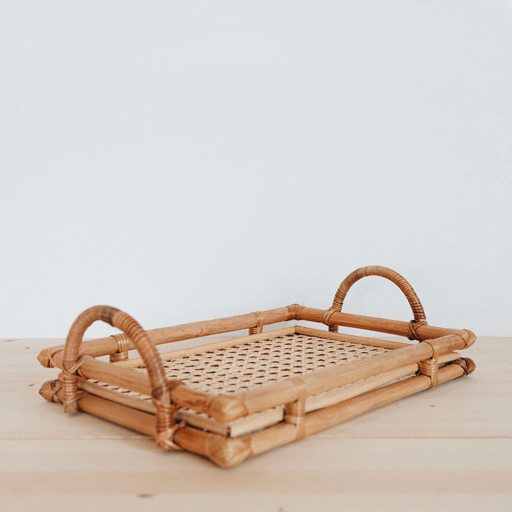 Handmade by village artisans, our rattan trays look gorgeous on coffee tables and dressers, or in the bathroom as a catch-all. Also adds the perfect hint of dimension and texture for your shelfie!