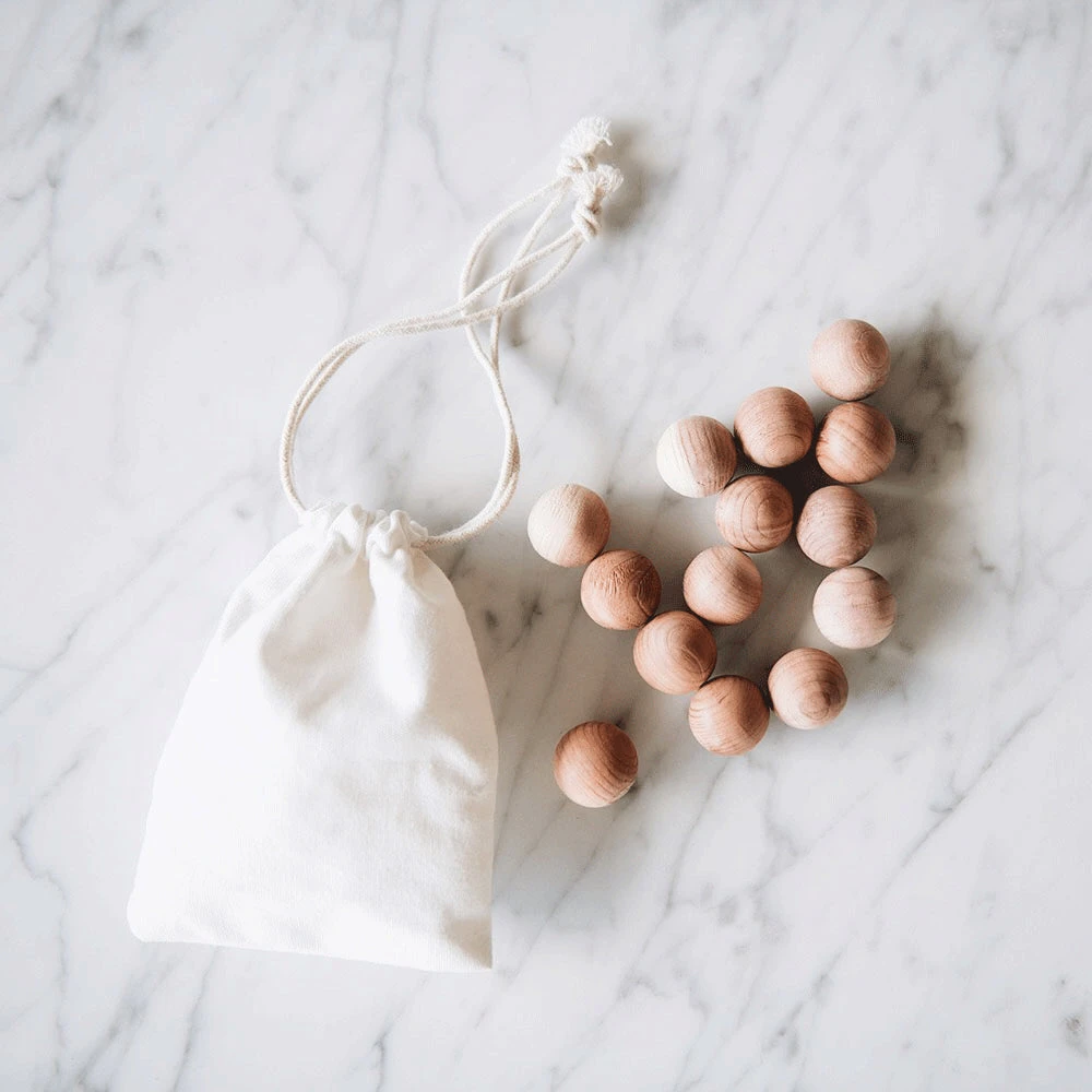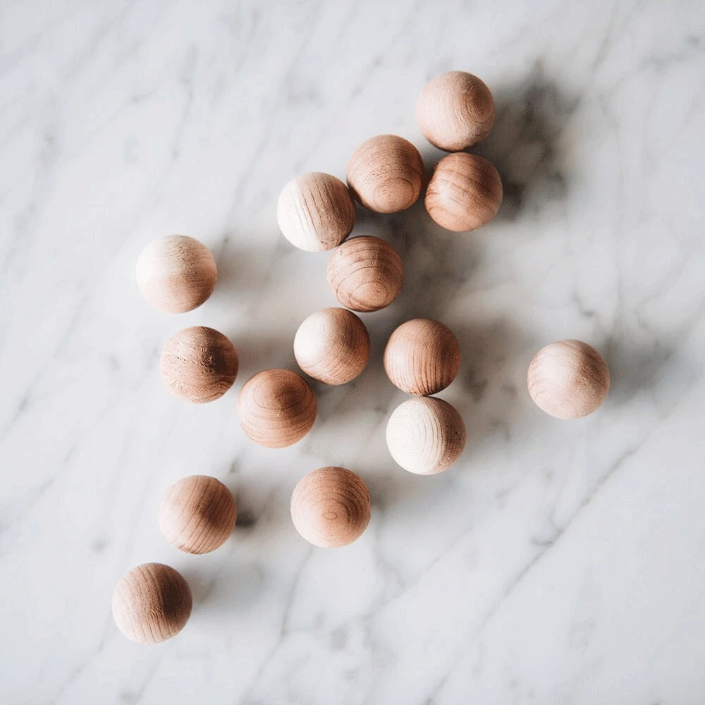 Utility balls to refresh your closet, drawers or dressing room. Placing red cedar in the closet releases an amazing fragrance that works as a natural pest repellent and keeps the space smelling fresh. The balls can be spread out in the closet but be sure not to put them directly on your clothes as the wood may leave grease stains. When the scent wears off you can sand lightly with fine sandpaper and the scent will freely release again.Â