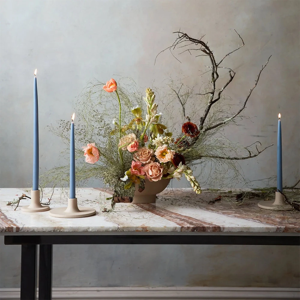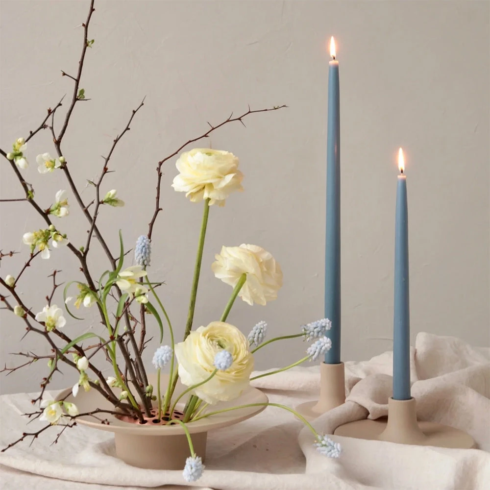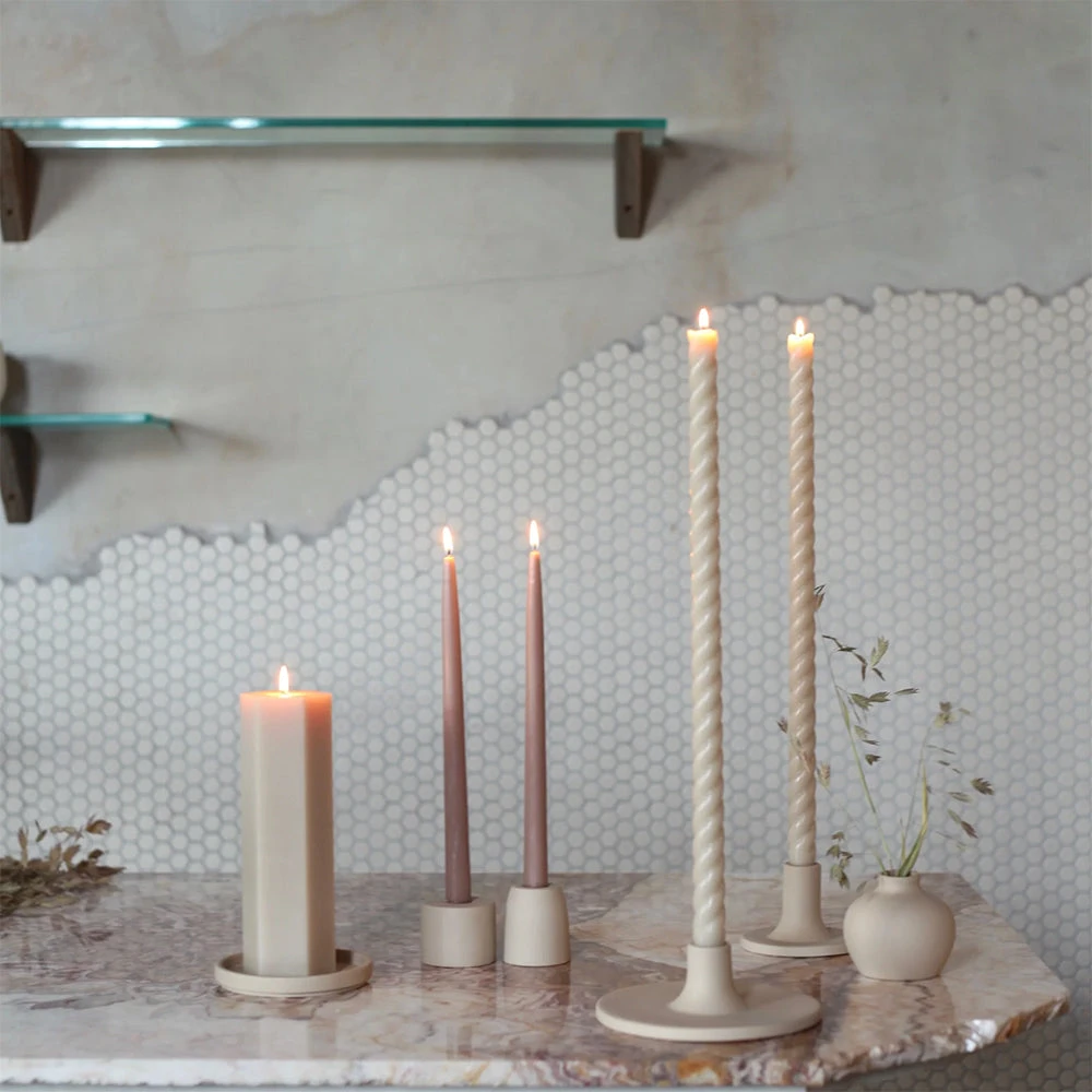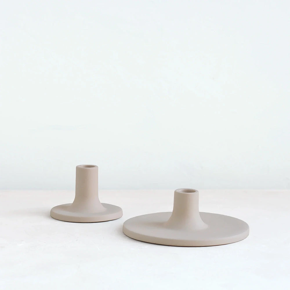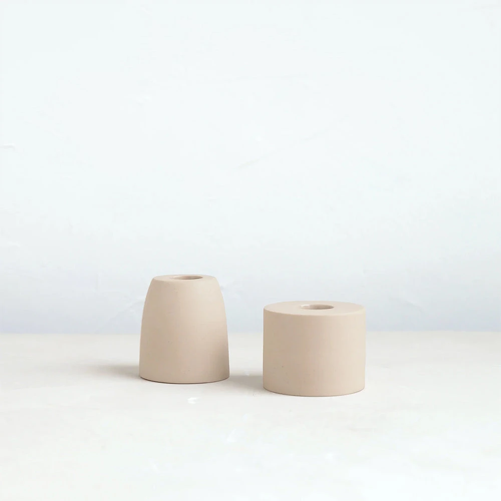 Beautiful ceramic taper holders with a matte finish. Each holder is sized to fit a standard taper candle.Â