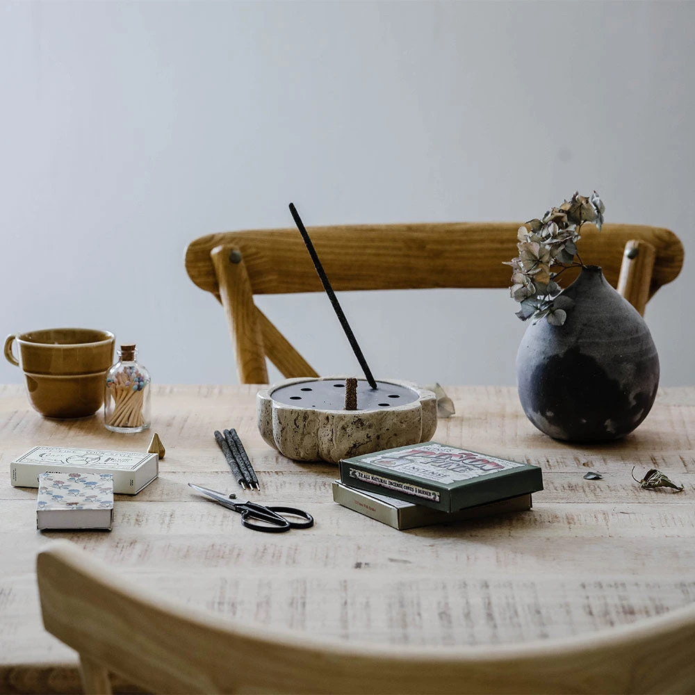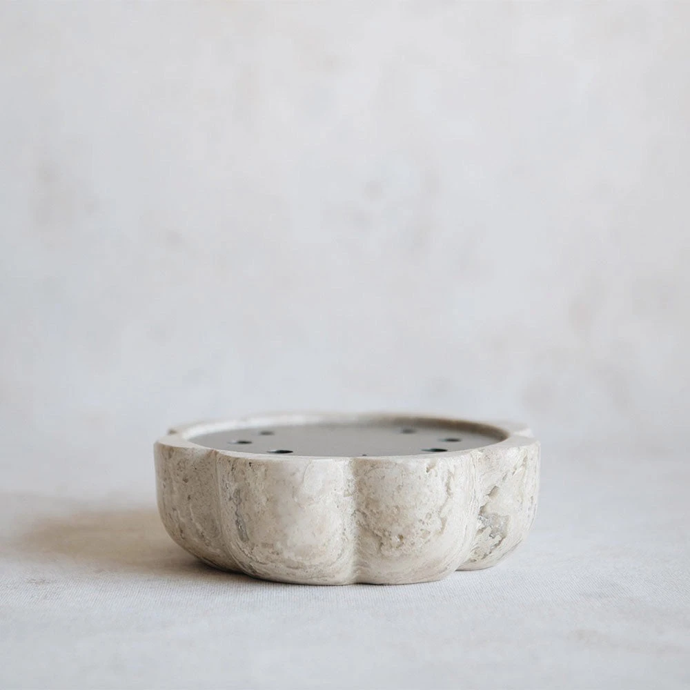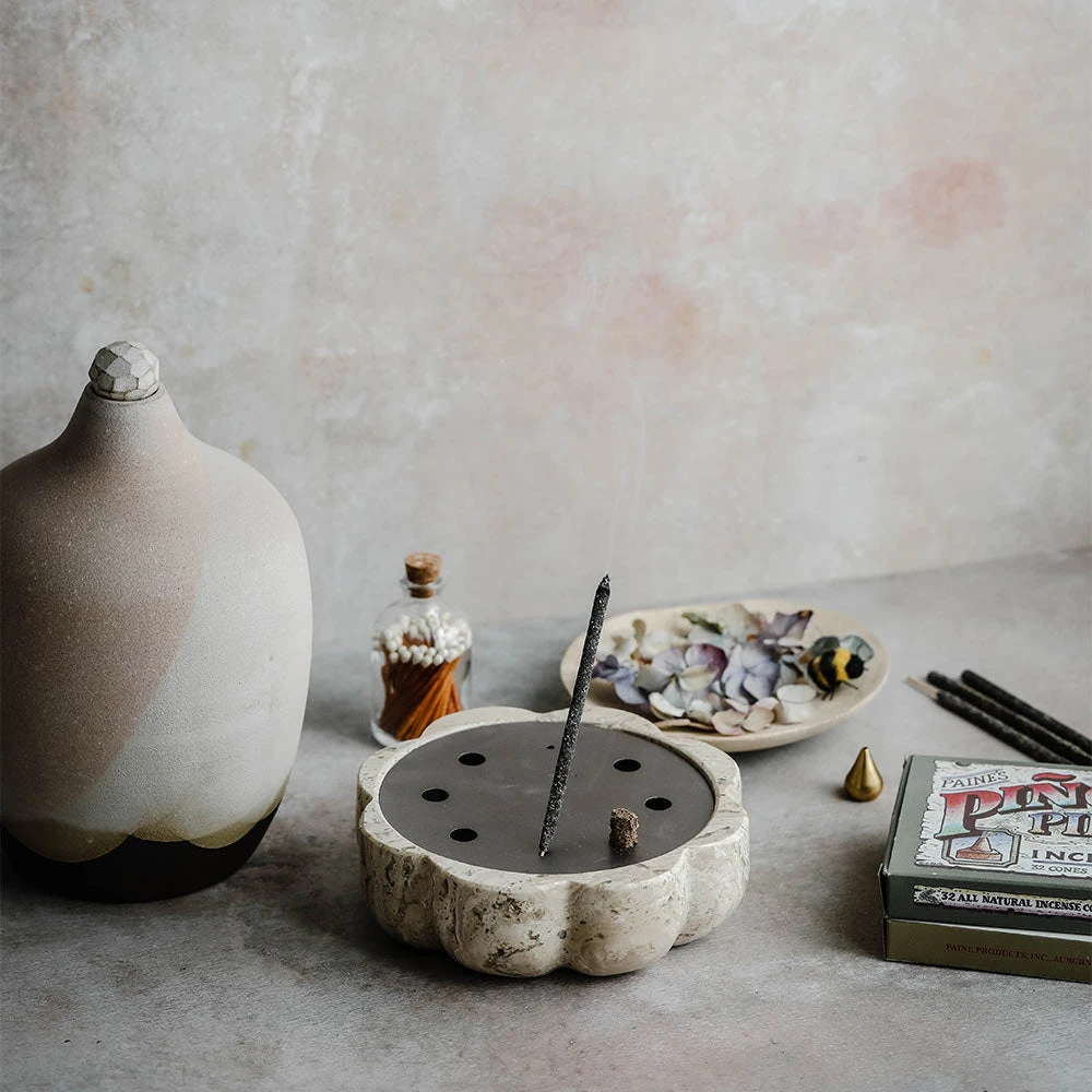 Beautiful incense holder carved by hand in travertine marble.