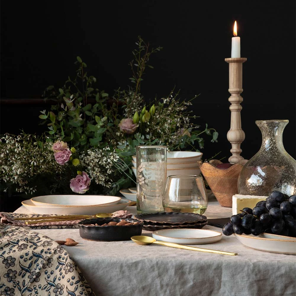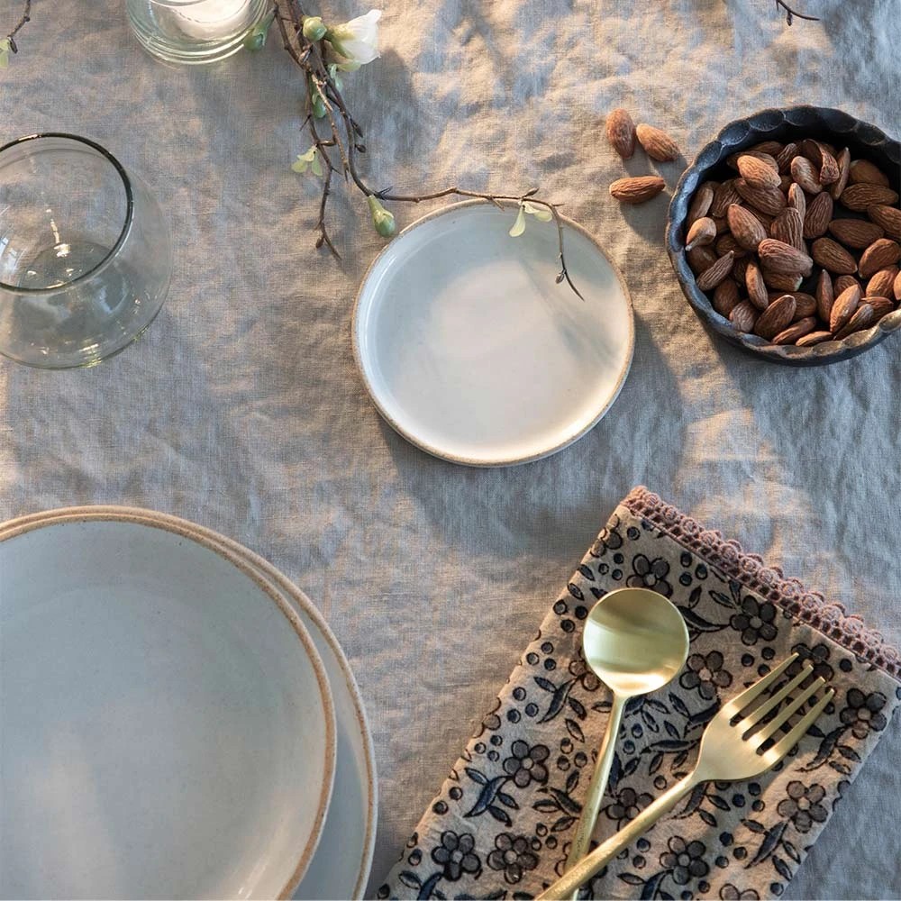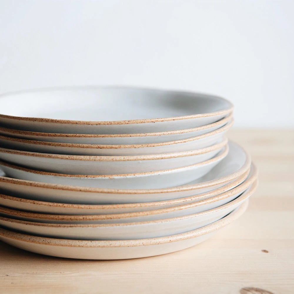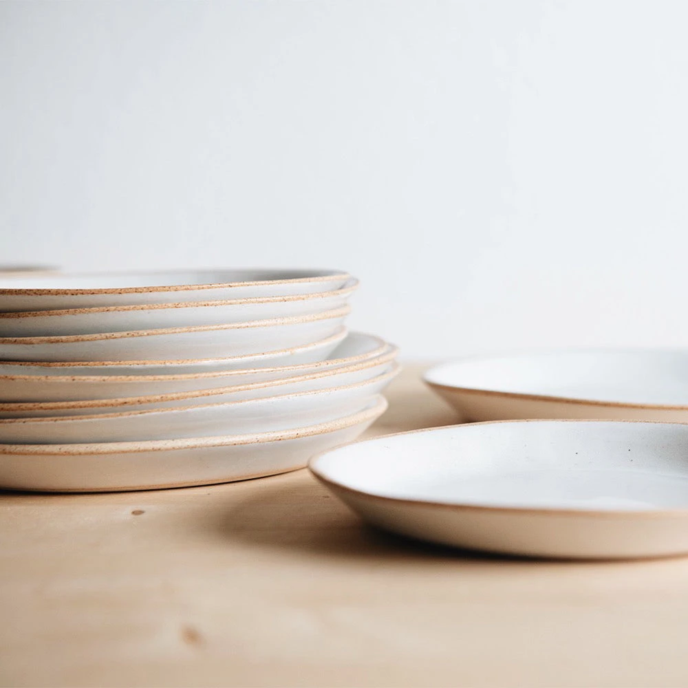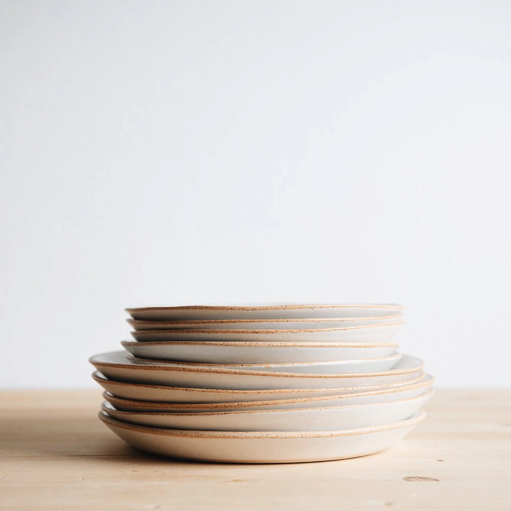 Perfectly simple ceramic plates for everyday use. Each piece is handmade using sand stoneware and finished in an ivory glaze. The glaze on the rim of each piece has been removed to allow the warmth of the sand clay to be highlighted.
