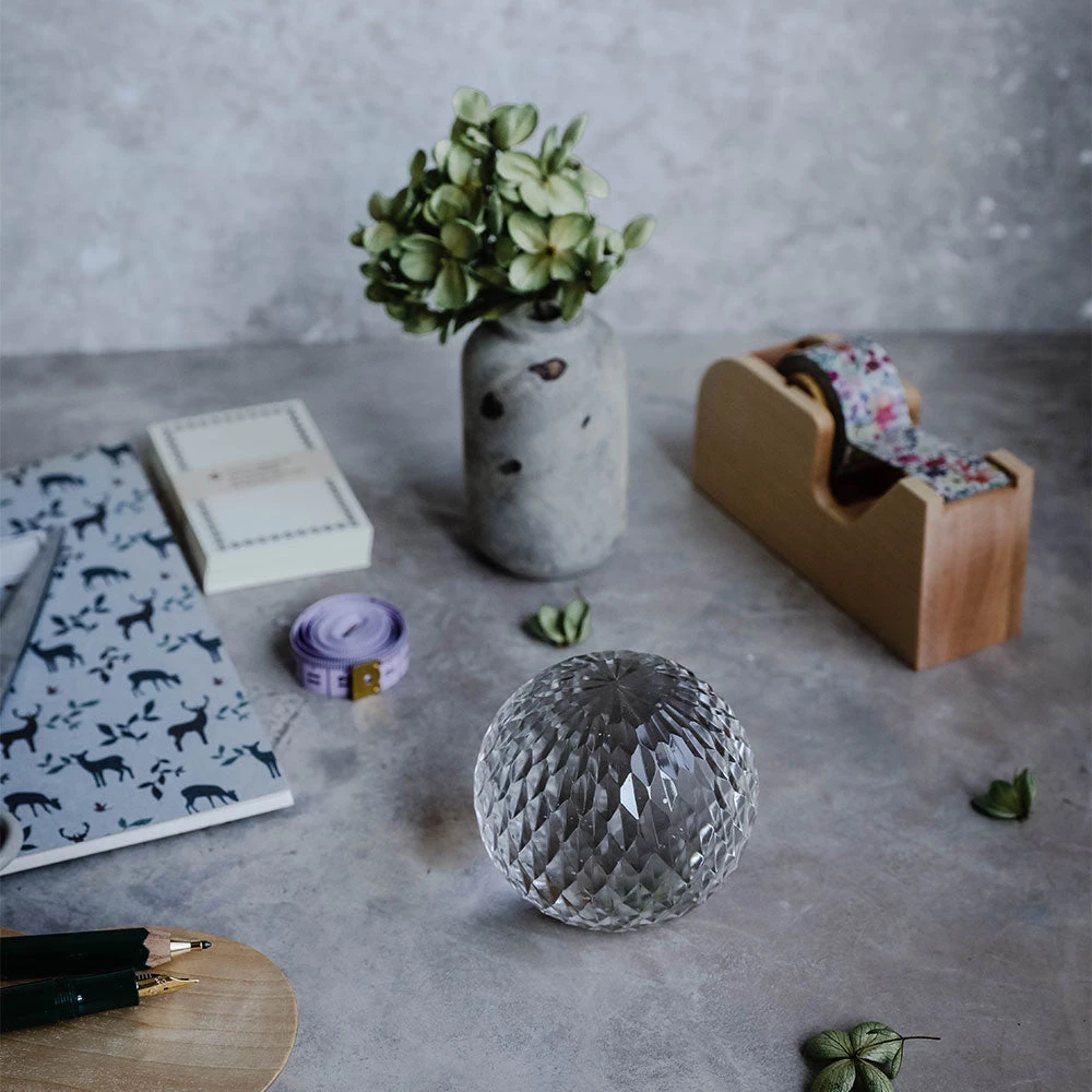 These ornate paperweights are made from intricately cut clear glass. Watching them being made is a sight to behold. The cut glass is shaped whilst the glass ball is still molten, using astounding traditional techniques.