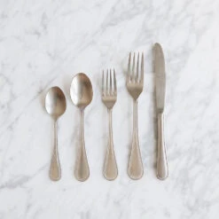 Beautiful flatware set with a stunning pottery-inspired patina and intricate detailing.