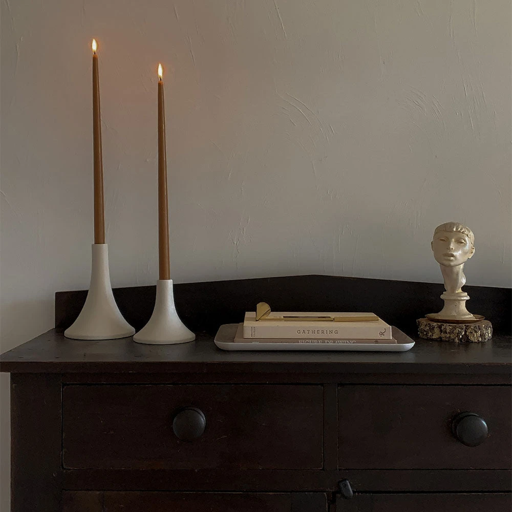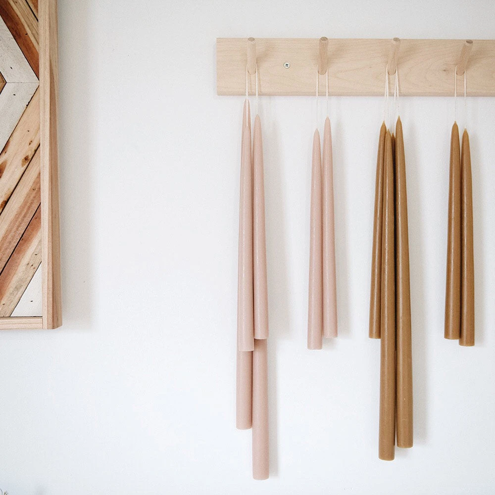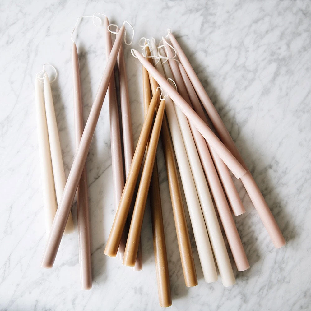 These stunning taper candles are crafted to burn drip-free at a rate of approximately 1 hour per inch. Each candle is dipped 35 times for a superior depth of color, and pairs are joined by a braided cotton wick for the cleanest burn.