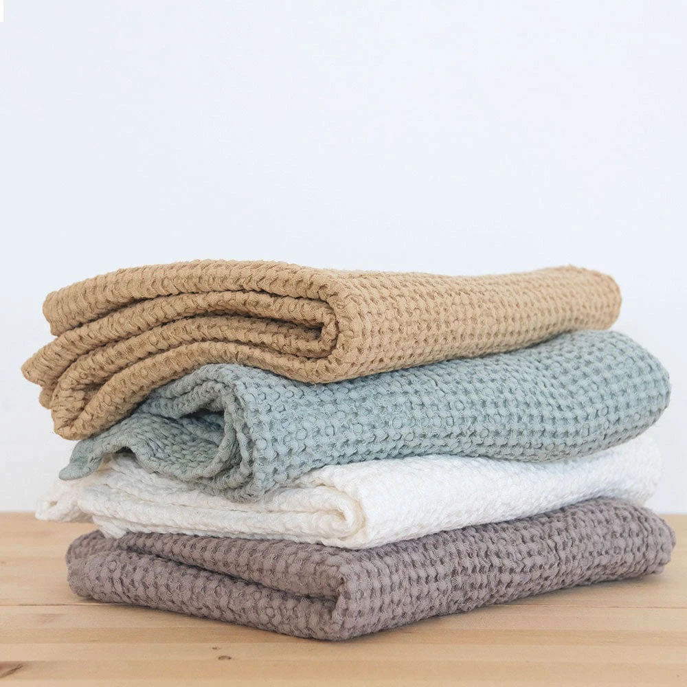 Lovely waffle towels that are lightweight and absorbent. Stone washed for maximum softness, these beautiful linens perfectly define elevated everyday.