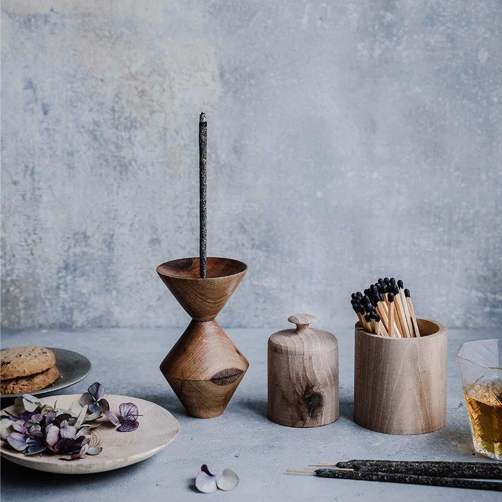 This walnut wood incense holder holds both stick and cone incense.Â
