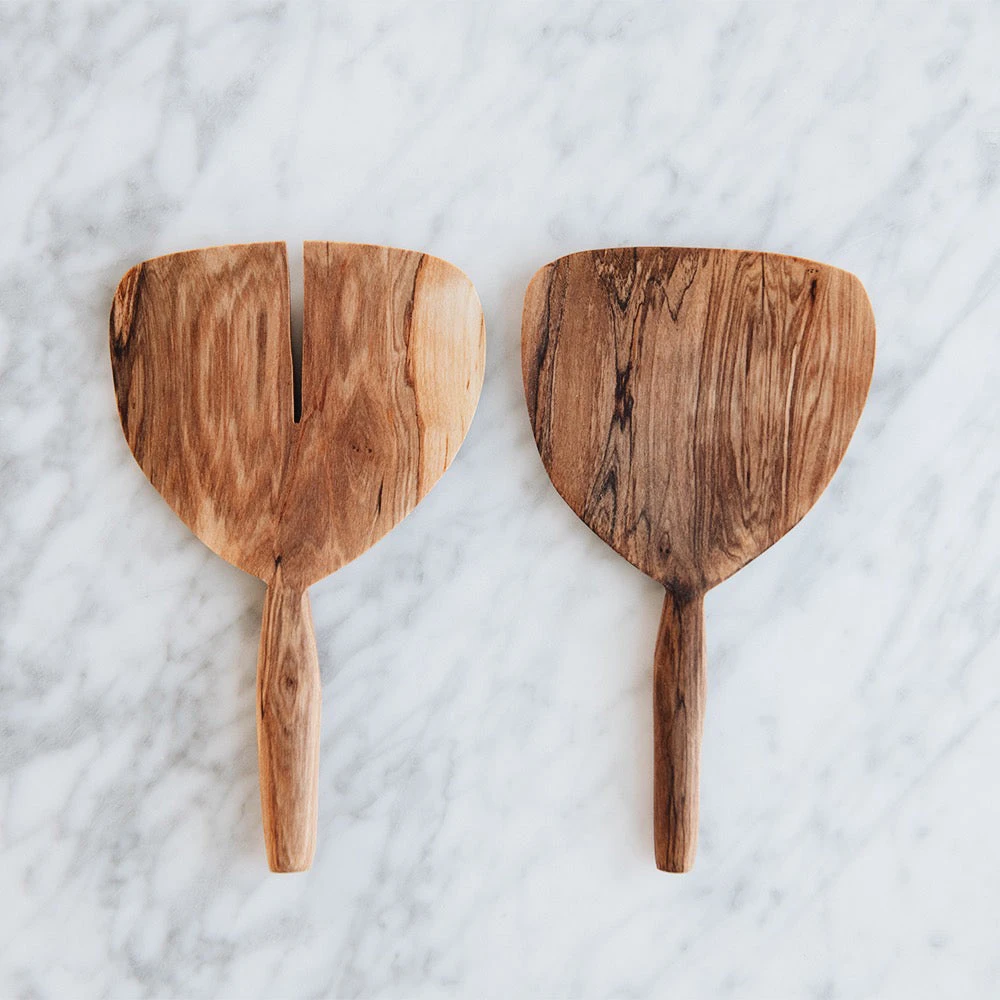 Kenyan artisans hand-carve these salad servers from sustainably sourced and beautifully grained wild olive wood, an East African tree known for its striking appearance. The perfect addition to your tabletop!