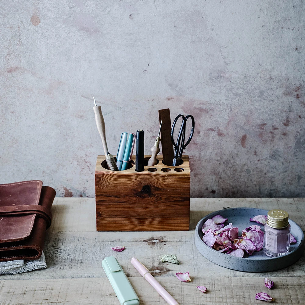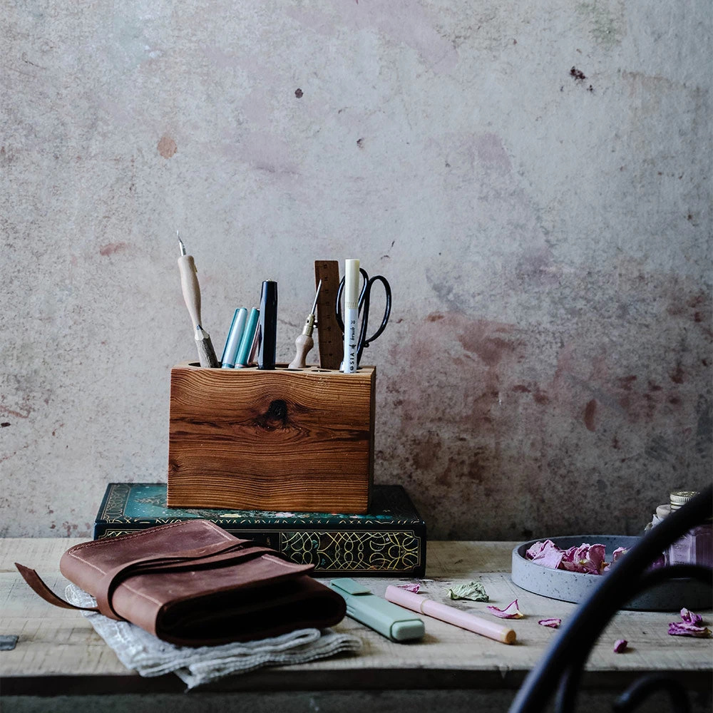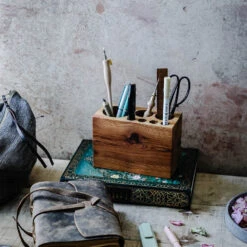 Handmade, one-of-a-kind wood caddy. These beauties will clear your clutter and look good doing it. Each caddy will vary in grain and indications of the wood’s prior use.