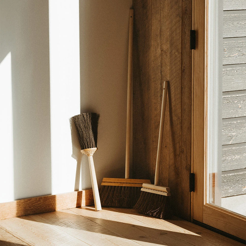 Broom in oil-treated birch and arenga fiber. A flexible broom that is perfect for cleaning up around the porch, entrance, and patio. The shorter handle allows for easy storage and is also ideal for having your little ones help to tackle some chores.