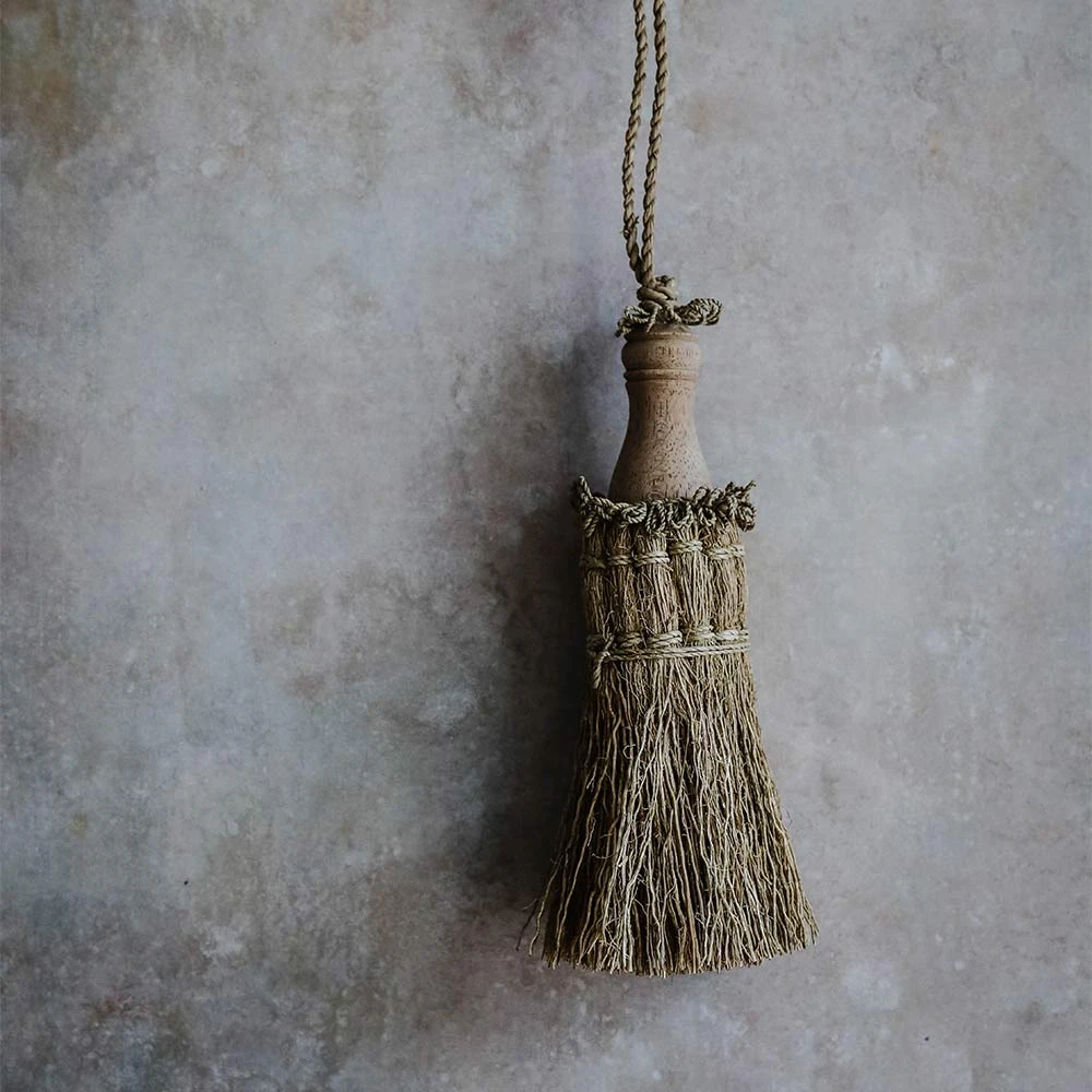 Vetiver tassel decorated with a hand-carved wooden top. As vetiver is a naturally aromatic root, it never loses its scent. After some time, the pores might close up, diminishing the aroma. If this happens, simply dip the tassel in water & put it to dry in the sun. The pores will open again, and the scent will freely release again.
