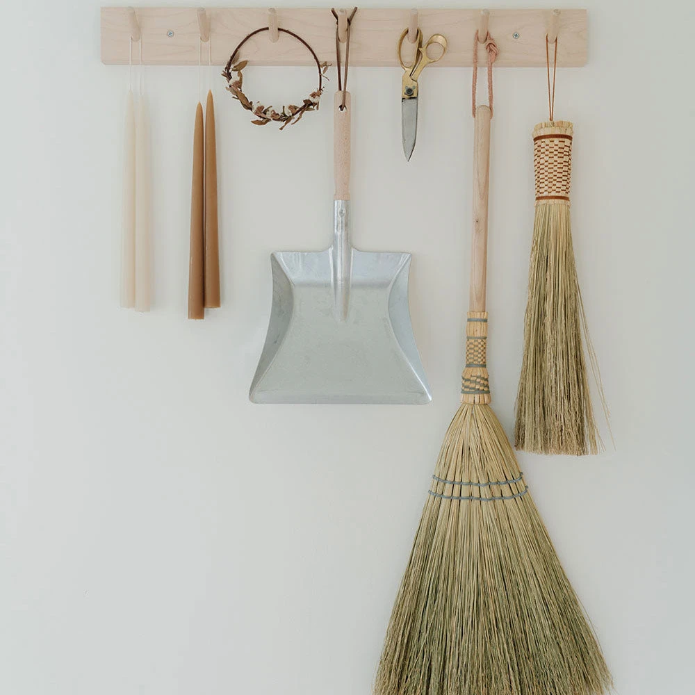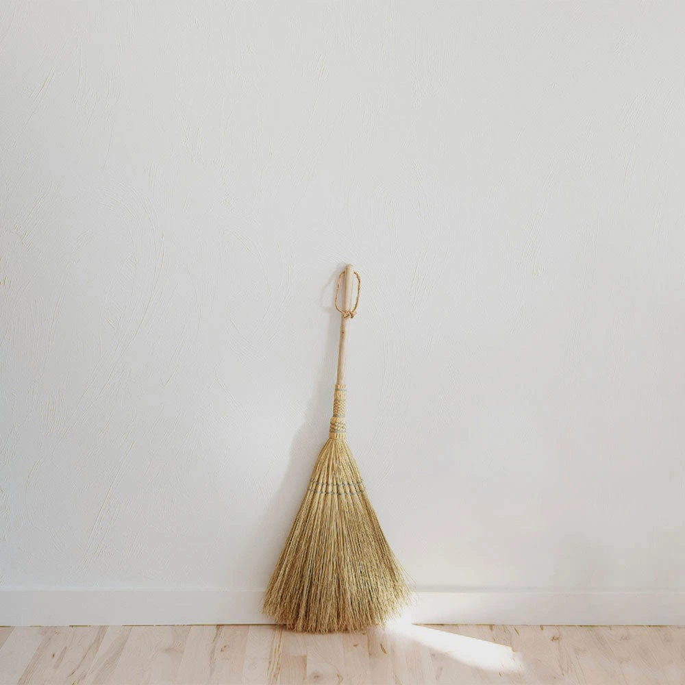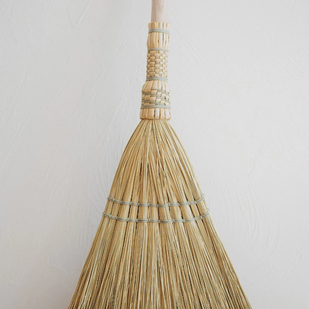 Showcasing a timeless Appalachian weave atop a farmhouse-style broom, this piece is a meld of tradition and functionality. Its expansive, loosely bound sweep excels in capturing dirt and dust, thanks to the meticulous preservation of split ends that ensure a soft yet efficient clean. Each broom is hand-bound using a turn-of-the-century kick winder, and features hand-stitched cotton flat-weaving, reflecting an unwavering commitment to craftsmanship.