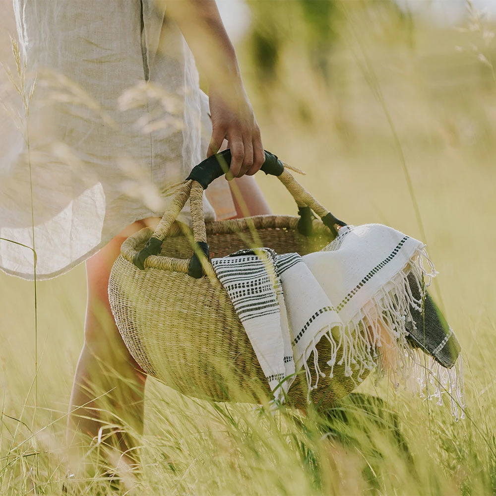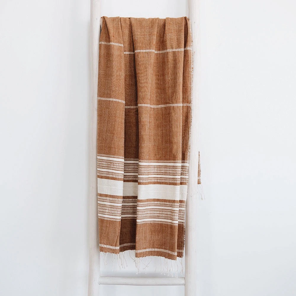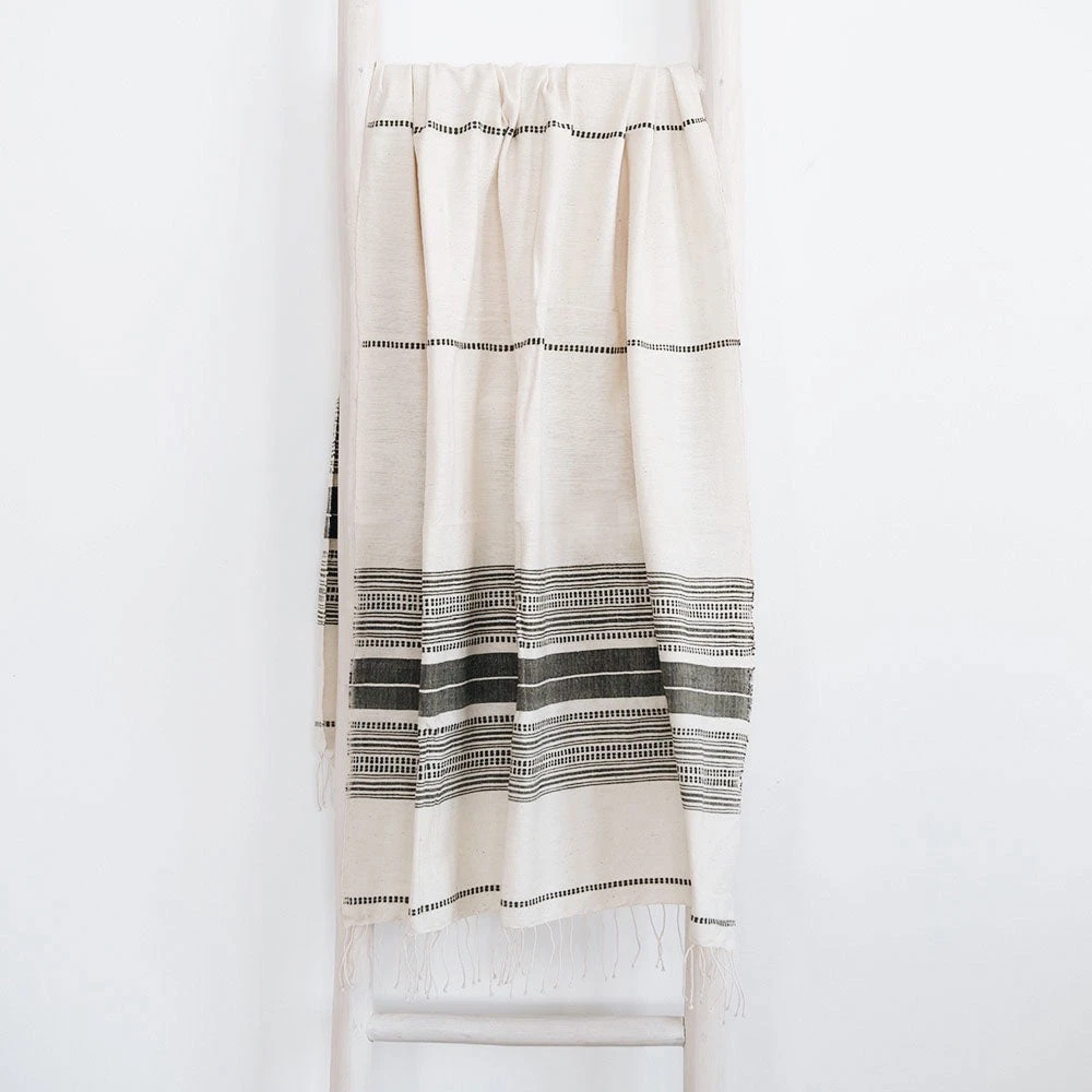 Handwoven in Ethiopia using time-honored weaving traditions and AZO-free dyes. All of the dyeing is done in small batches at the workshop as the artisans work to rekindle the tradition of natural dye in Ethiopia.Â